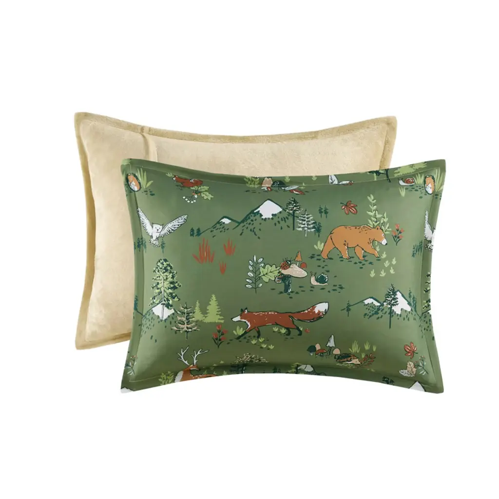 Gracie Mills Harvey Kids Forest Animals Plush Reversible Comforter Set - Twin - Green