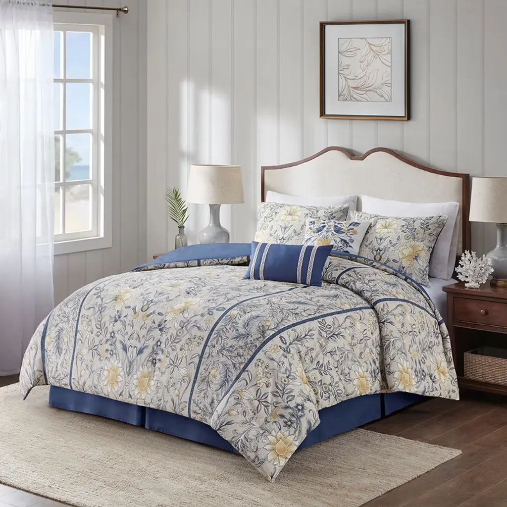 Gracie Mills Marlon 6-piece Botanical Cotton Comforter Set - King - Blue/yellow