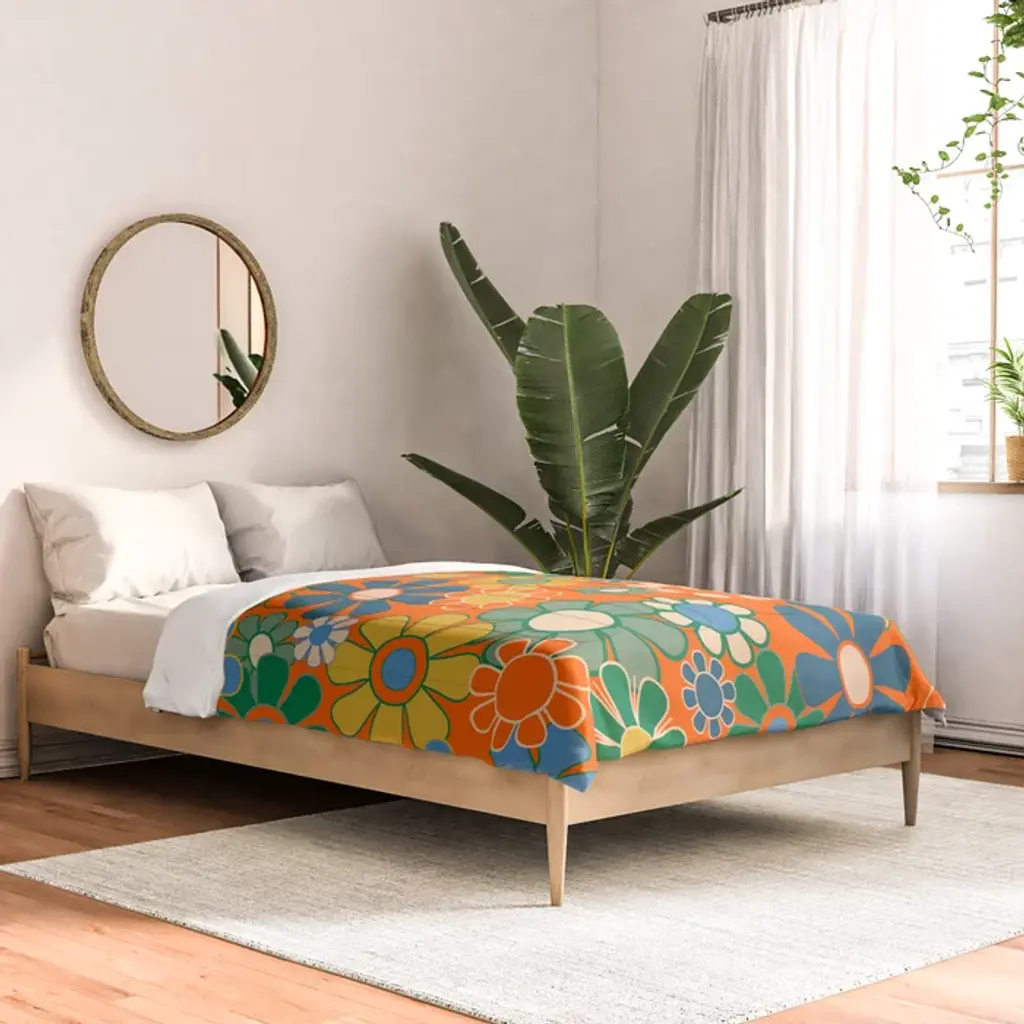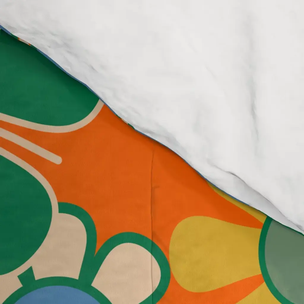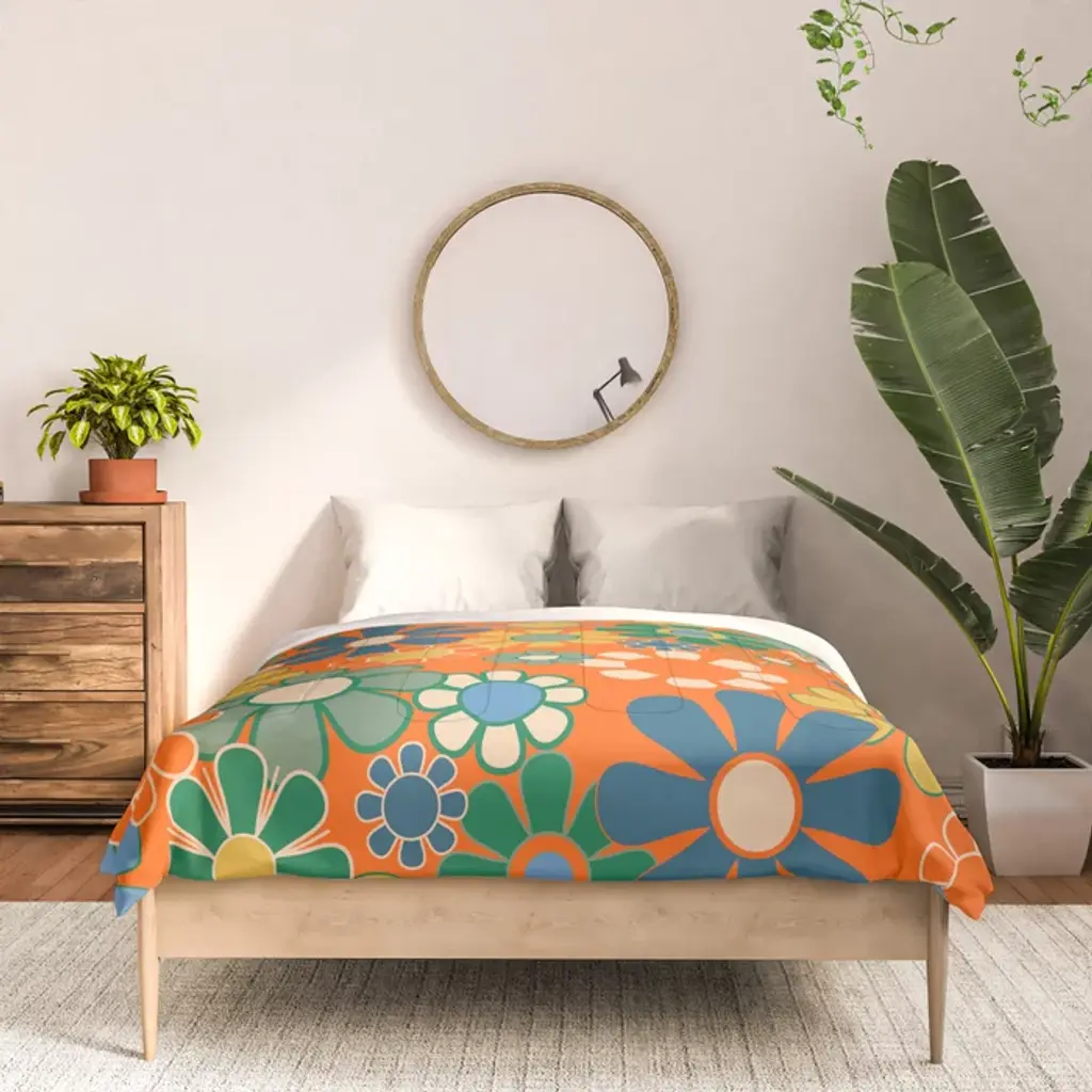 Groovy Floral Garden Orange Blue Green Mustard Yellow 60s 70s Flower Pattern Comforter