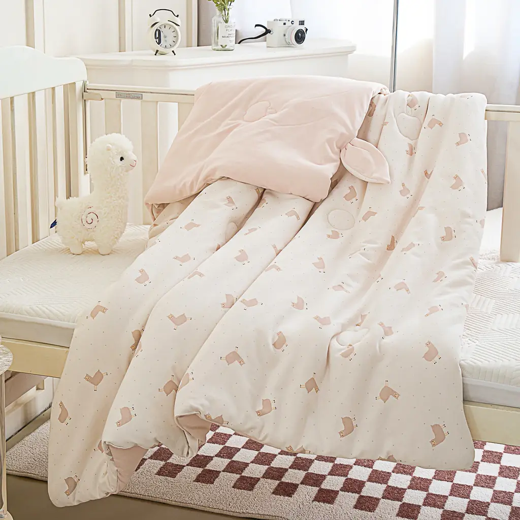 With its colorful alpaca patterns and breathable kitted cotton fabric, this baby all season comforter pairs adorable ear design with incredible softness that’s gentle on baby’s skin. It's crafted from knitted cotton material that's lightweight and durable.