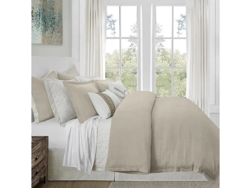 Soft, airy, and simply sophisticated. Our Hera Flange Linen Comforter Set comes in an array of soft, muted colors, accented by a flange border for an elegant finish. With a versatile palette, this bedding set easily blends in with a variety of casual and contemporary styles. Our signature linen-blend is easy to care for and mimics the look and textural appeal of linen without the creases. Layer with our Stonewashed Cotton Velvet Quilt for a casual yet luxurious look.