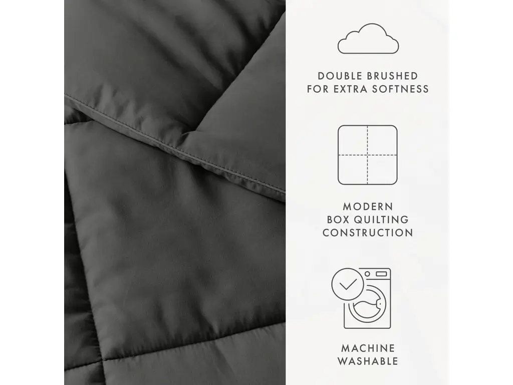 Give your bedding a brand new look and feel with this all season down alternative comforter. Presenting a quality alternative to down, it's incredible loft and down like feel makes it the perfect comforter to keep you cozy all year round. The end to end baffle box construction helps to eliminate the need for regular fluffing by preventing the fibers from shifting. Available in 6 gorgeous colors, you're sure to find something to match your sleep space!