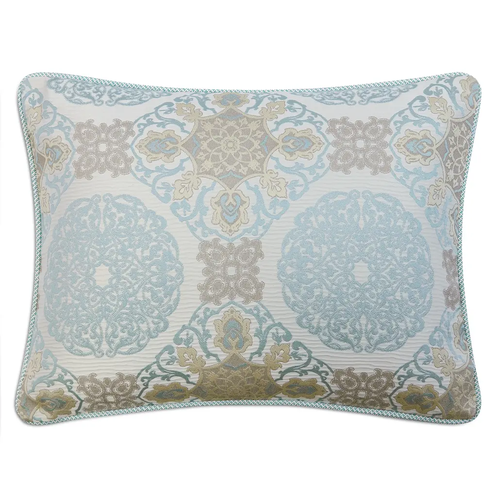 The Jonet collection features a beautiful aqua medallion design, against a cream jacquard background for extra dimension. With a subtle cream ogee on the reverse, you'll fall asleep peacefully in this dreamy bed.