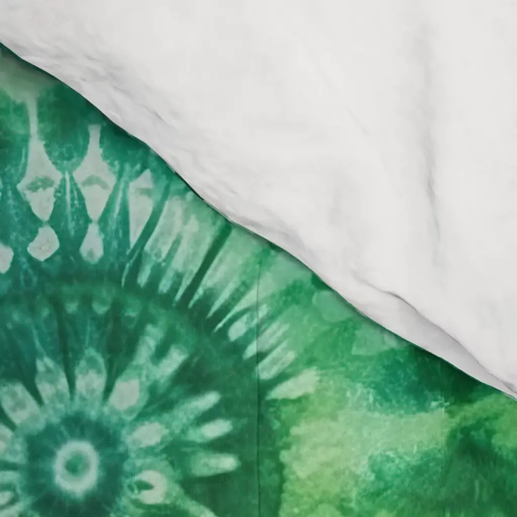 Jumbo Tie Dye Batik In Bright Green Circling Swirls On Teal Comforter