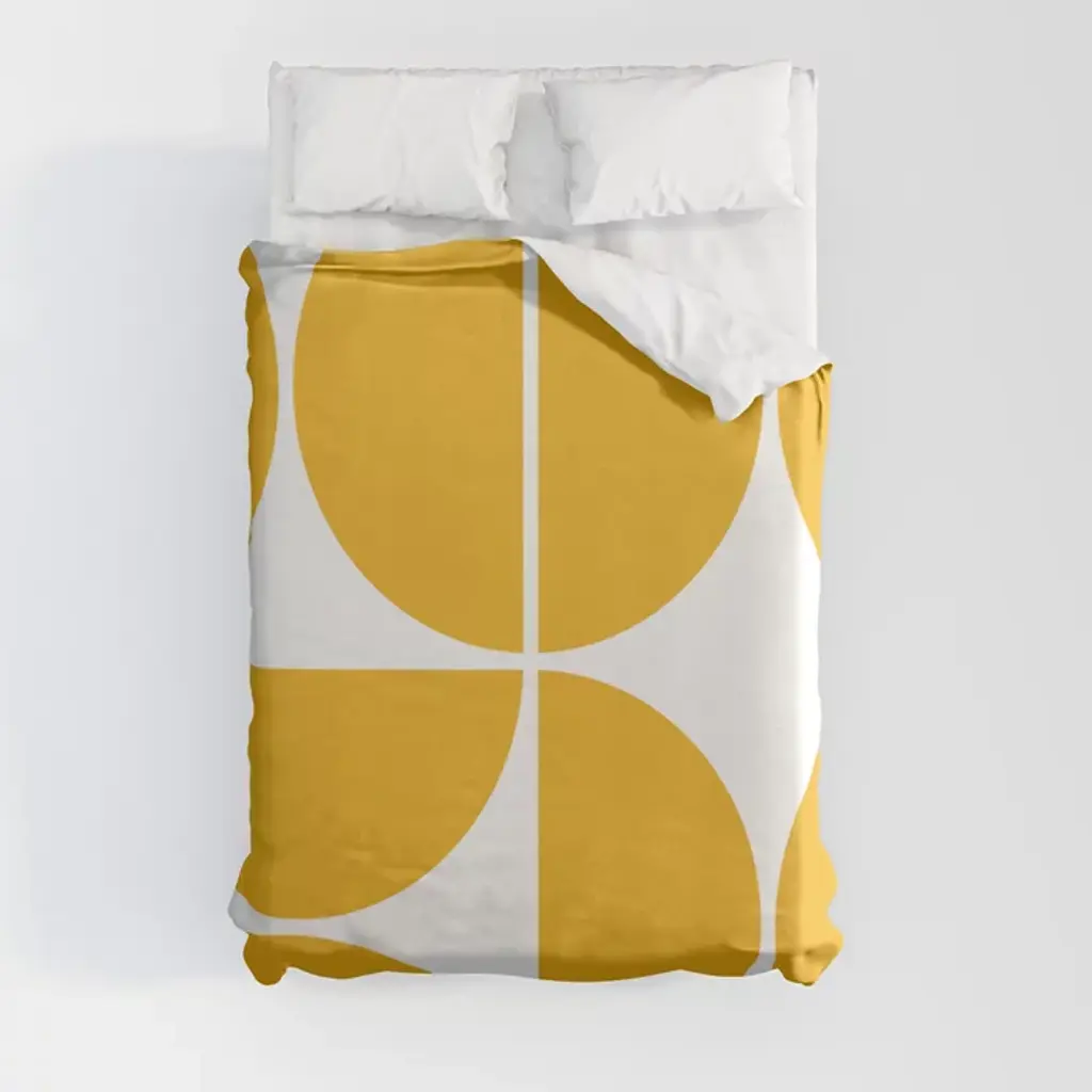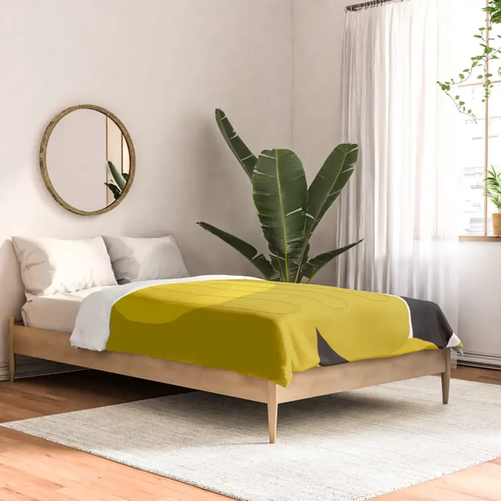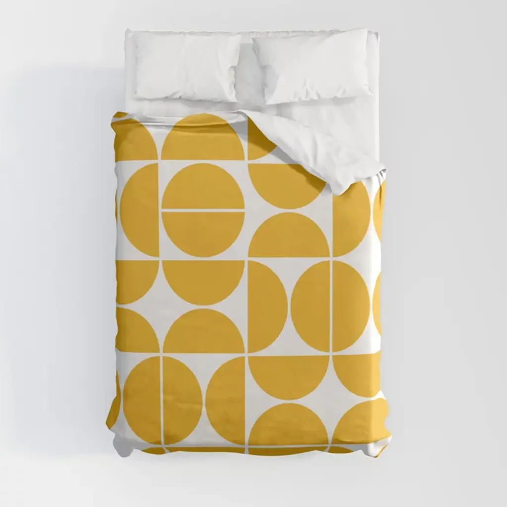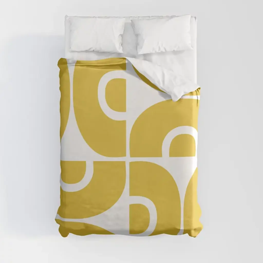 Large Dijon Mustard Yellow Retro Flowers On Dark Branches White Background #Decor #Society6 #Buyart Comforter