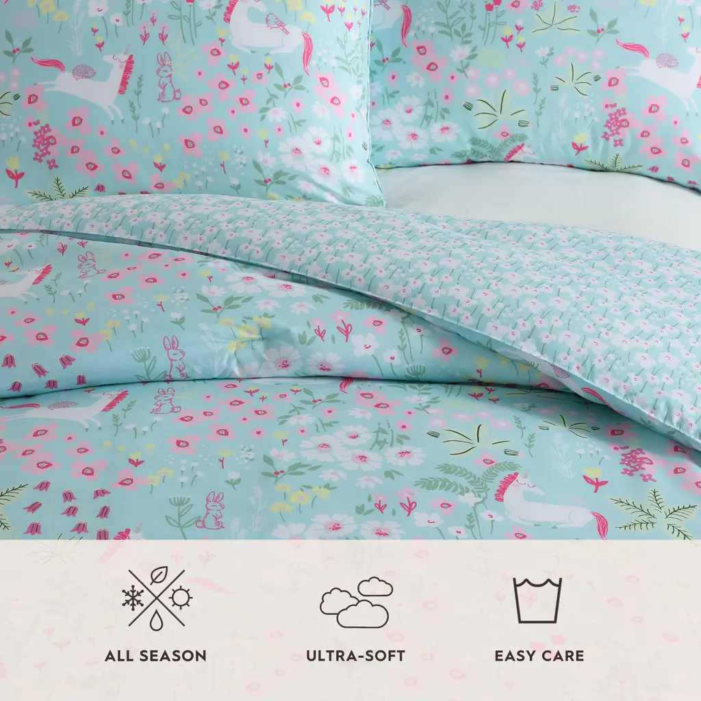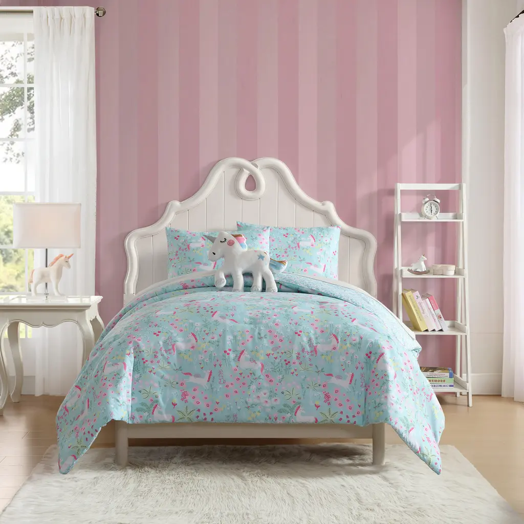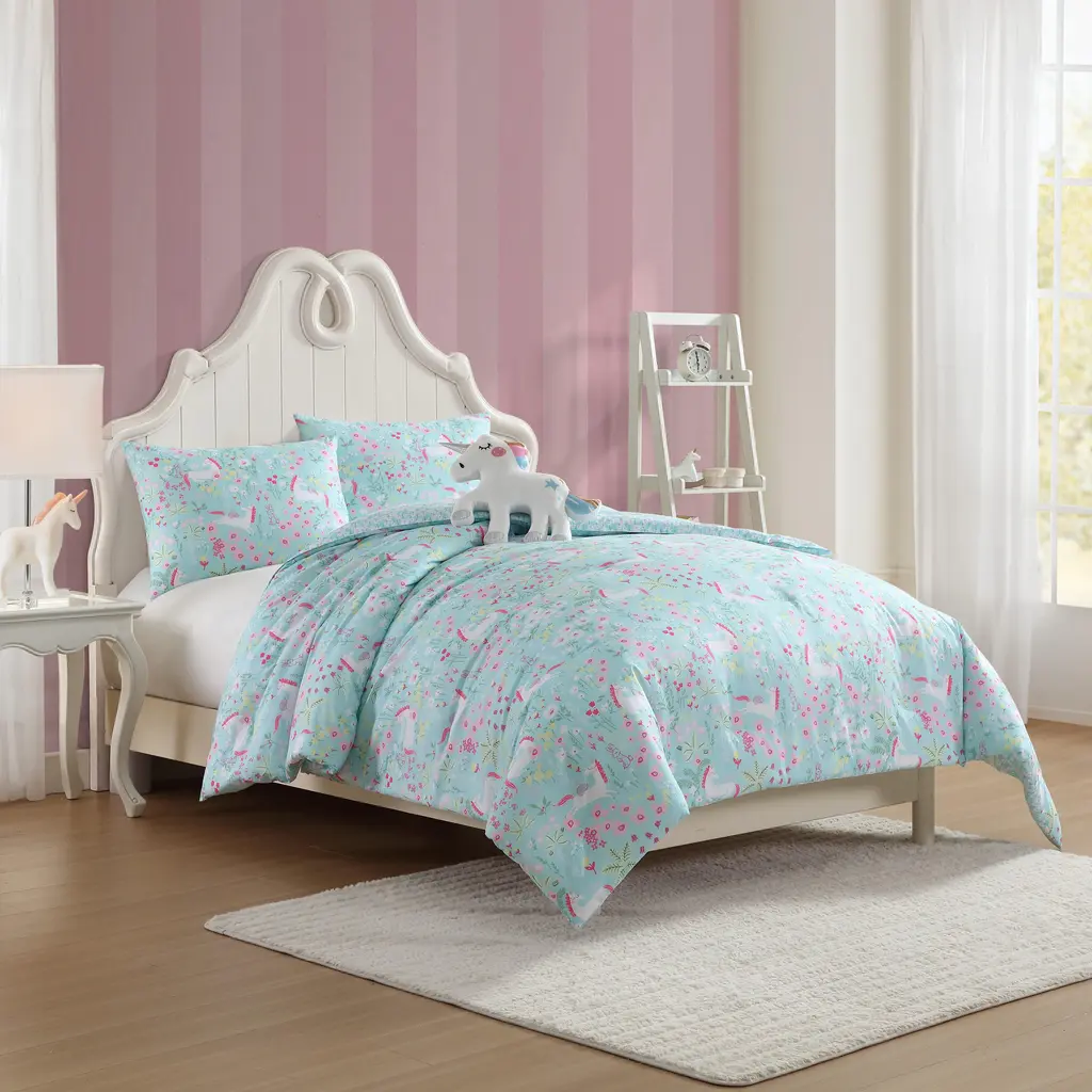 Laura Ashley Kids Magical Unicorns Blue Comforter Bonus Set - Twin