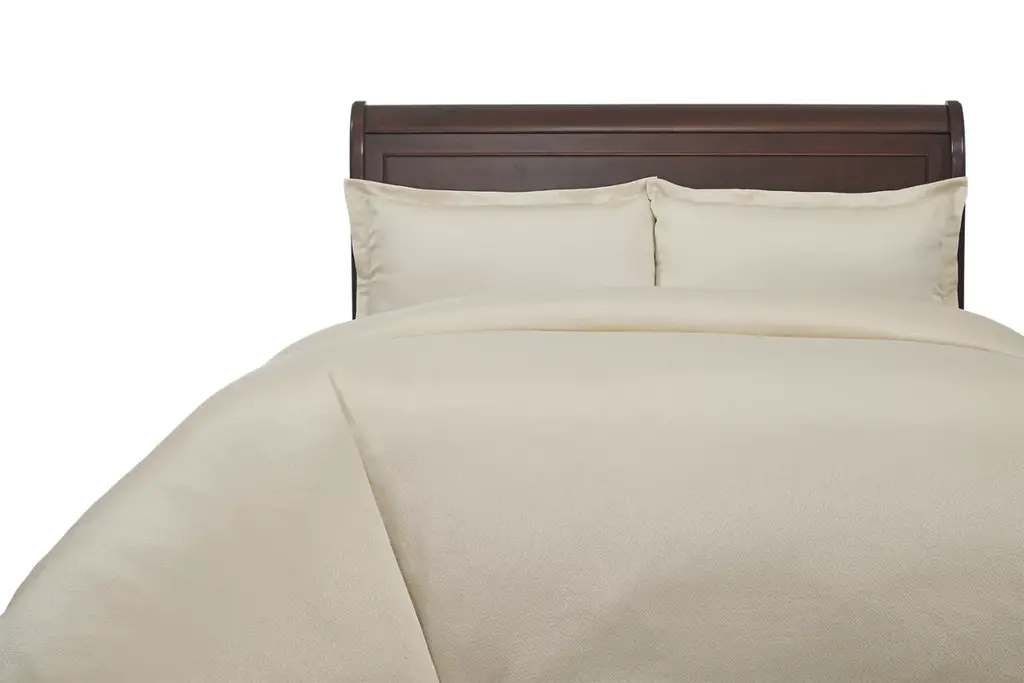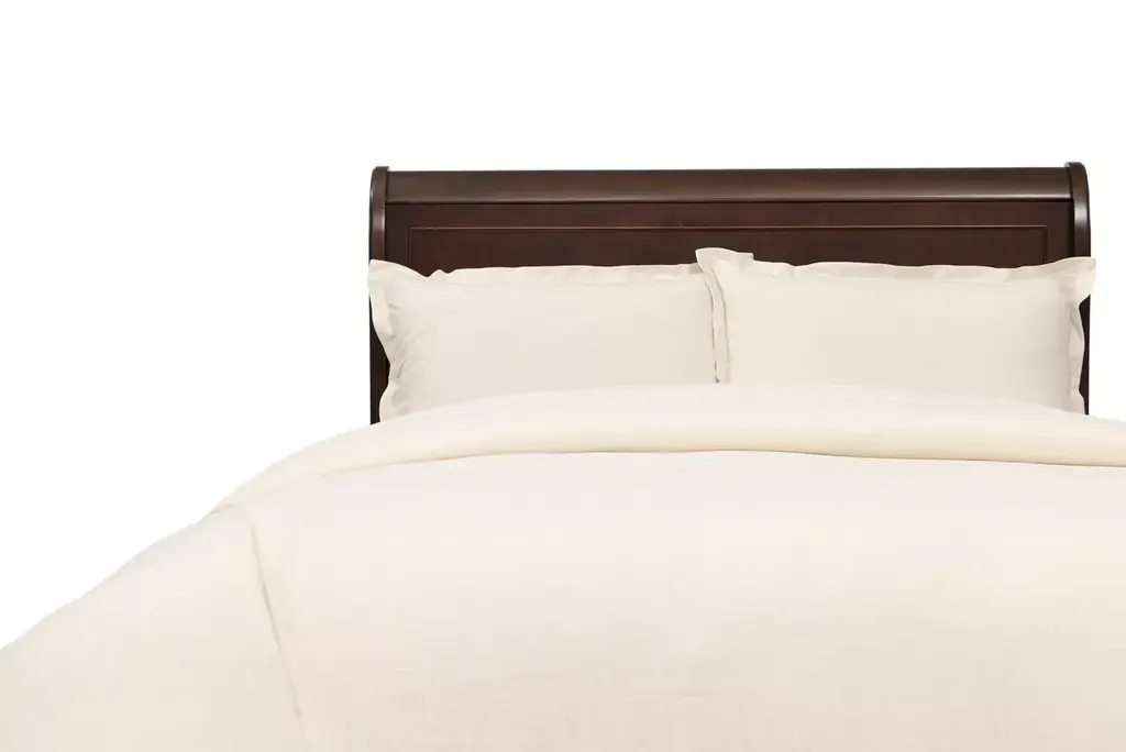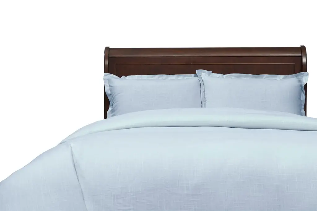 Our Lenore comforter ensemble brings a tranquil, understated style to your bedroom with your choice of solid colors in beige, light blue or sage. This set is the perfect foundation to layer in accent pillows in contrasting colors, as well as coverlets and throw blankets to create a luxurious bedding display. The queen set includes one comforter and two standard shams while the king set includes one comforter and two king shams. Fabric content: 70% viscose, 30% linen. Spot clean only.