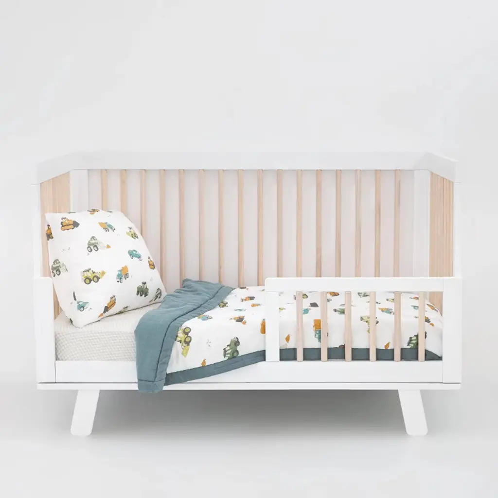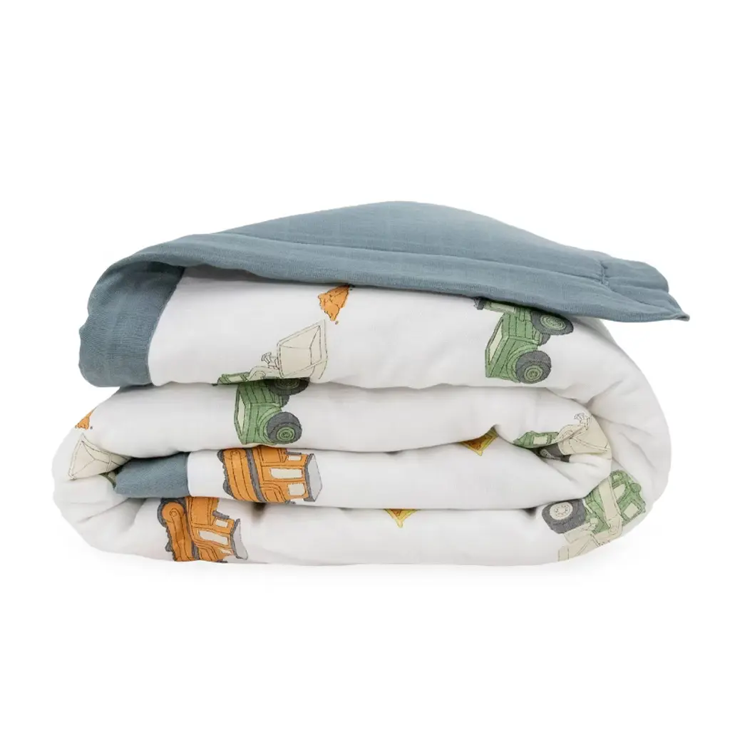 Let your toddler's imagination run wild with our cotton muslin Toddler Comforters. Made of soft, breathable cotton muslin, our comforter is lightweight, lofty and will keep your toddler cozy and warm in all seasons. Designed and sized to fit your converted toddler bed, without the bulk of excess fabric.Dimensions: 36 in x 50 in