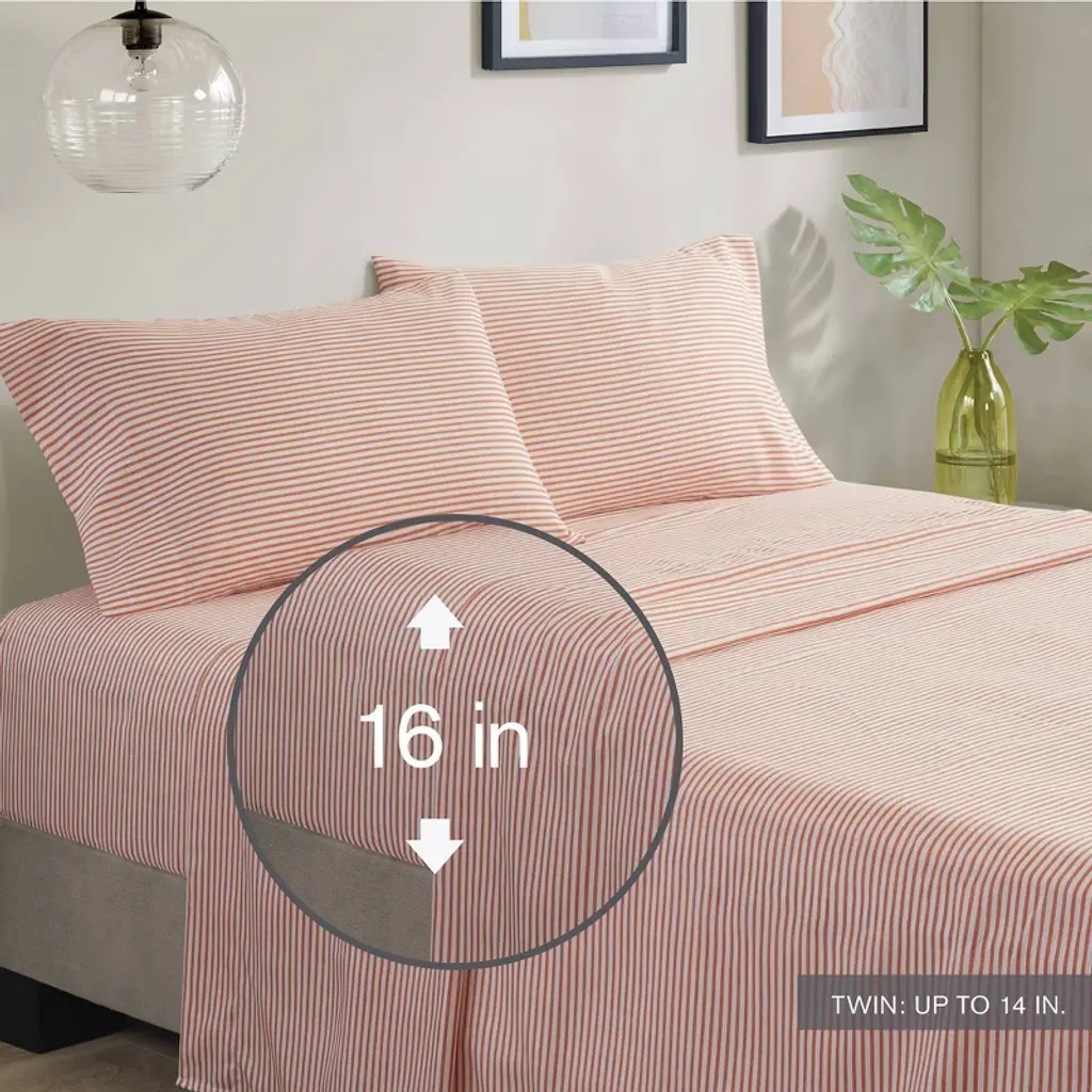Madison Park King Ryder Striped Comforter Set With Bed Sheet Coral Orange