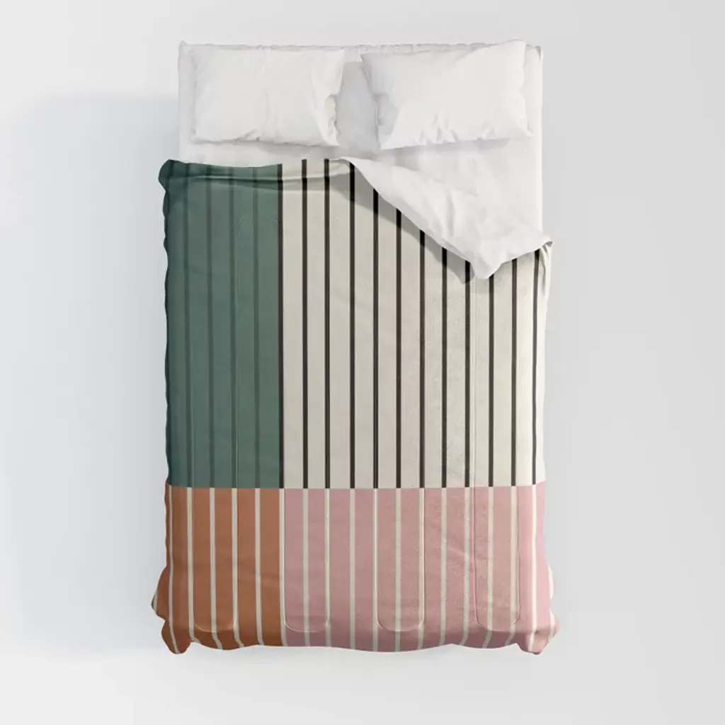 Revamp your bedroom style with the Madison Park Essentials bed in a bag. This modern comforter set features a stripe pattern in alternating colors that's pair with a solid reverse to create a casual vibe. The included sheet set has a coordinating stripe design to complement the soft and cozy comforter's look.