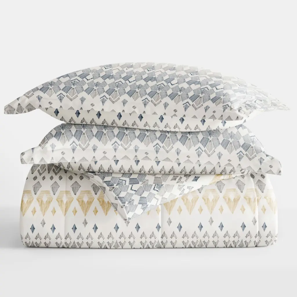 Give your bedding a brand new look and feel with this lightweight, all season patterned comforter set. Presenting a down alternative quality, it's incredible softness makes it the perfect comforter to keep you cozy all year round. Our premium yarns are twice as durable than cotton, which means less risk of rips and wear. The sewn through box stitching prevents the fibers from shifting.