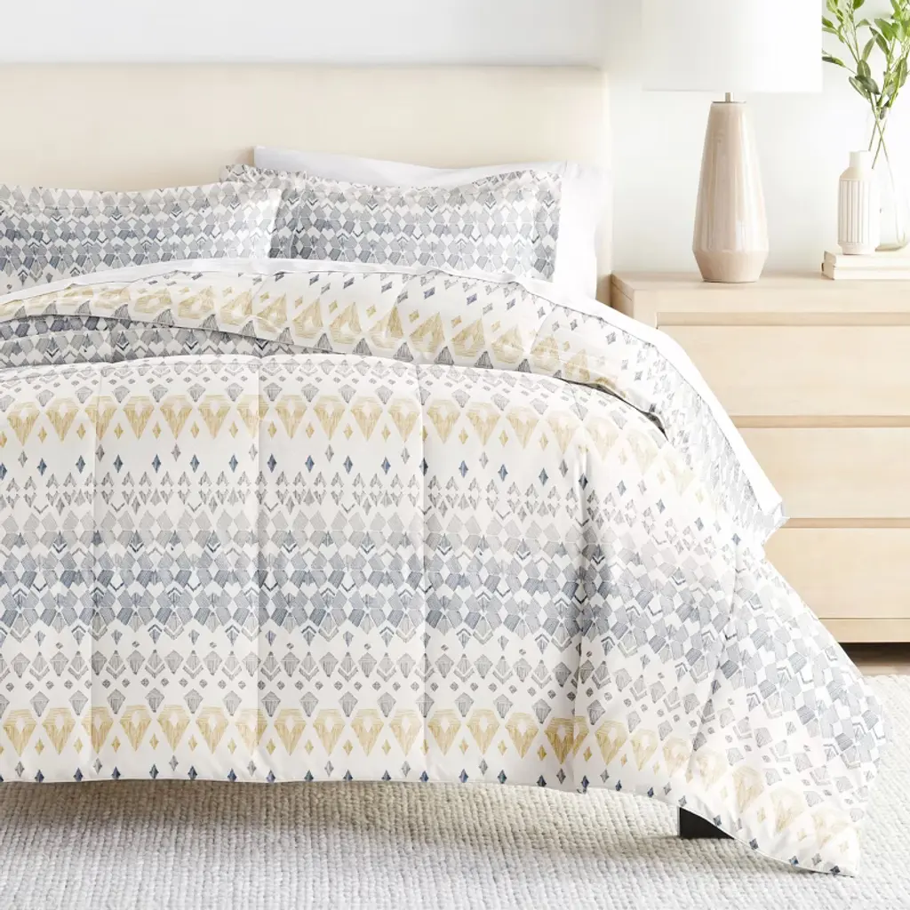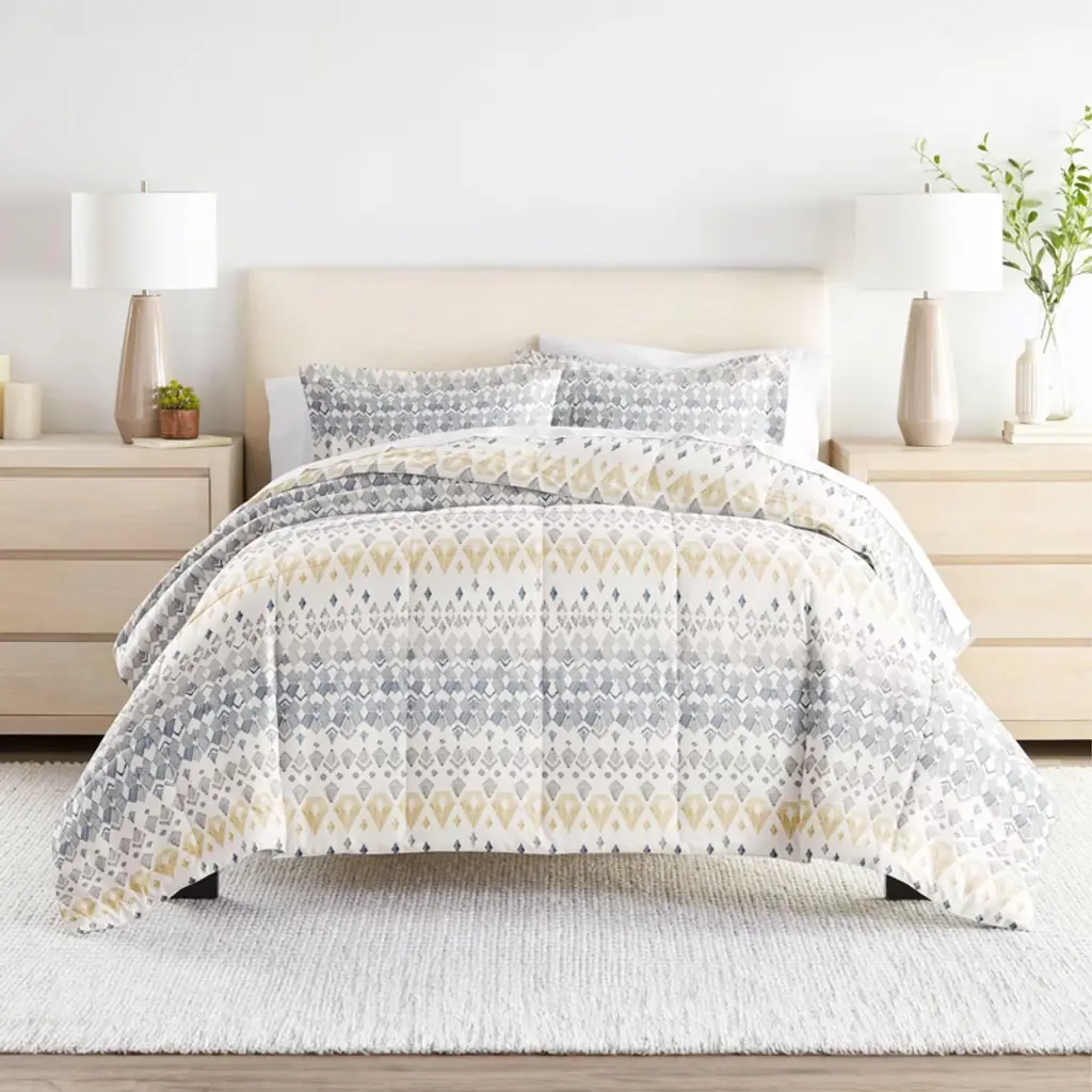 Give your bedding a brand new look and feel with this lightweight, all season patterned comforter set. Presenting a down alternative quality, it's incredible softness makes it the perfect comforter to keep you cozy all year round. Our premium yarns are twice as durable than cotton, which means less risk of rips and wear. The sewn through box stitching prevents the fibers from shifting.