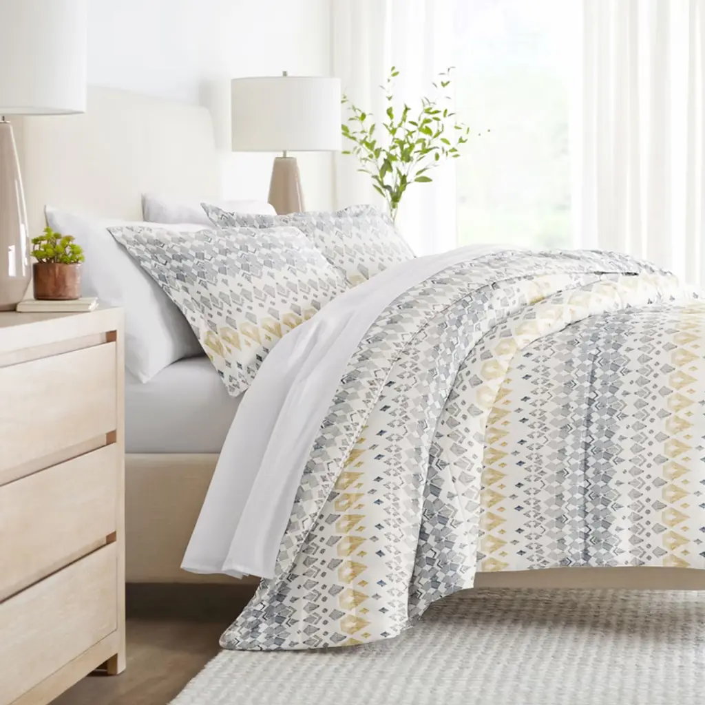Mayan Stamp All Season Reversible Comforter Down Alternative Filling - Becky Cameron, Gray, King/california King