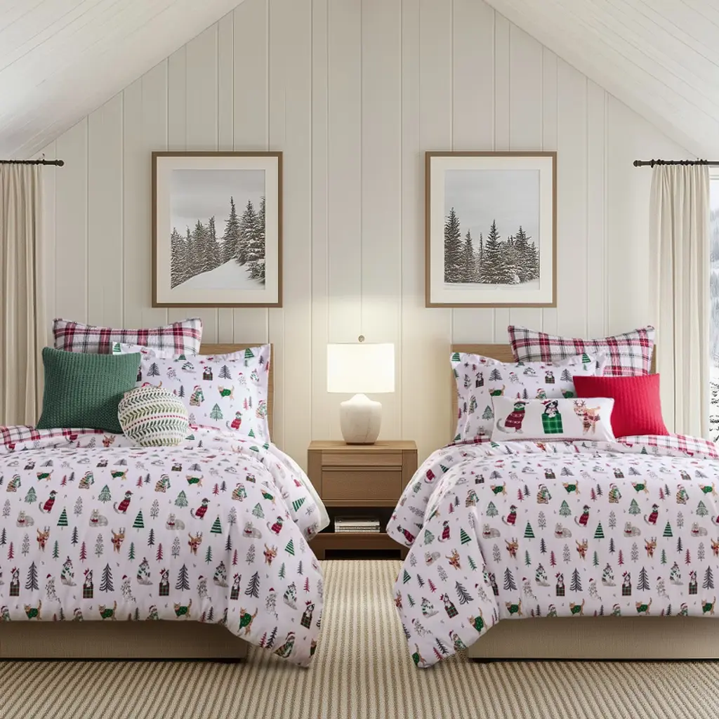 Bring festive charm to your room with the Levtex Home Meowy Christmas Comforter Set. Featuring playful cats in sweaters and Santa hats among decorated trees and presents, this cozy set includes a comforter and a sham. Crafted with a soft polyester front and back and filled with cozy polyester fill, it’s perfect for chilly nights. Machine wash cold, gentle cycle, line dry or tumble dry low.