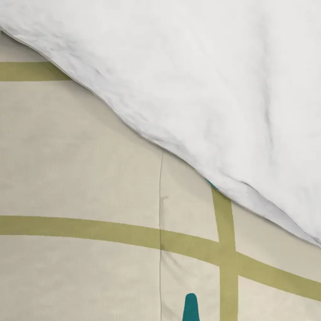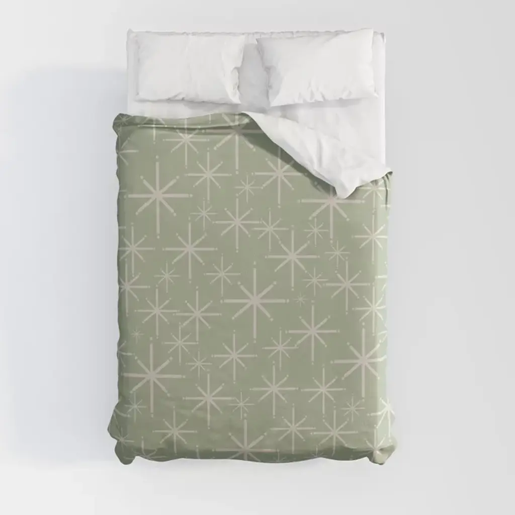 Mid Century Modern Cosmic Star Pattern 693 Cream Turquoise Olive Comforter