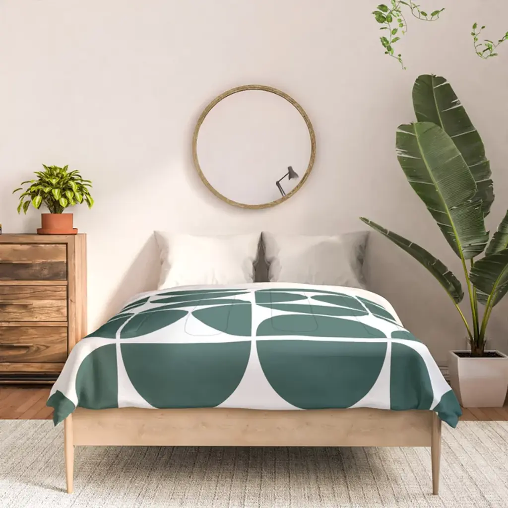 Mid Century Modern Geometric 04 Dark Green Comforter