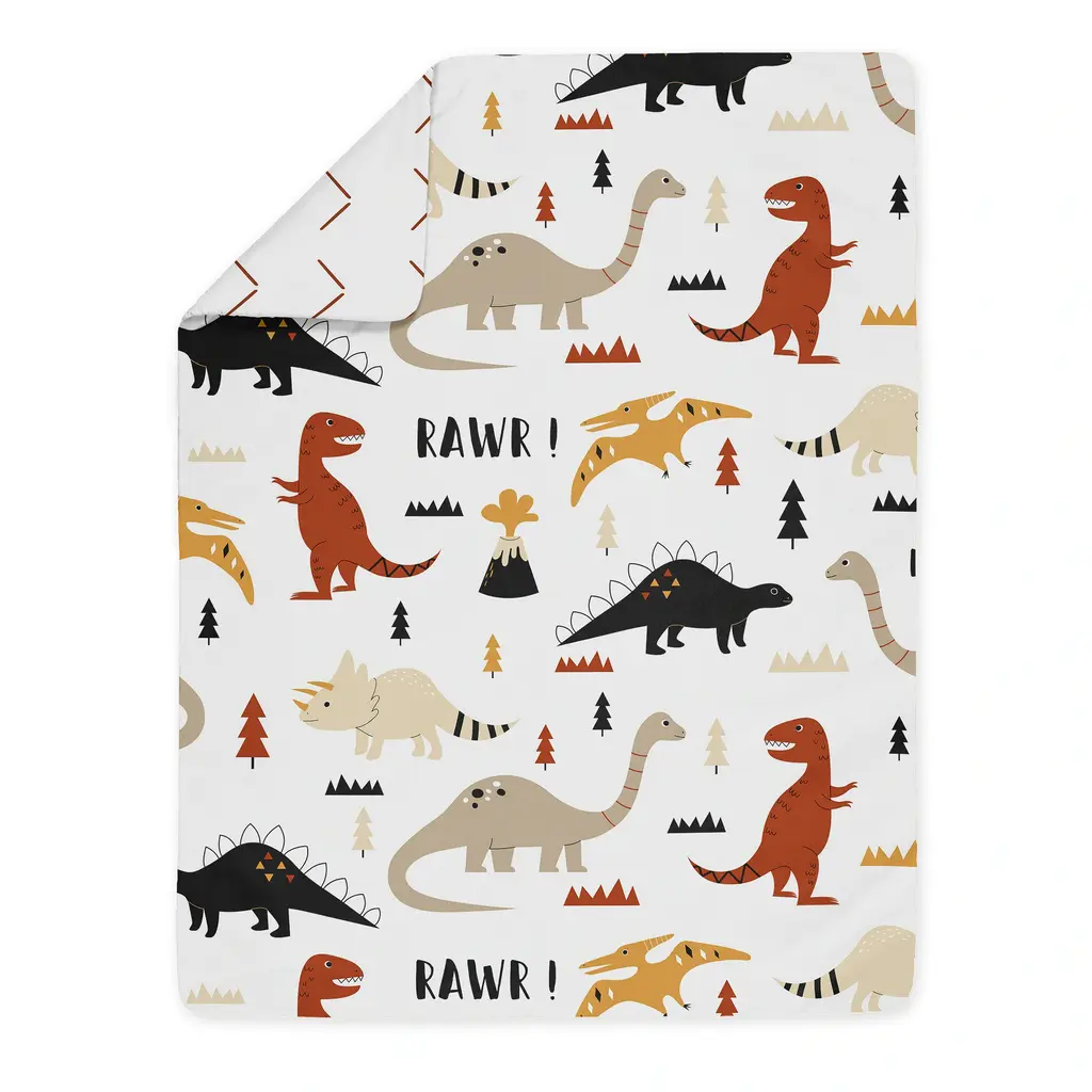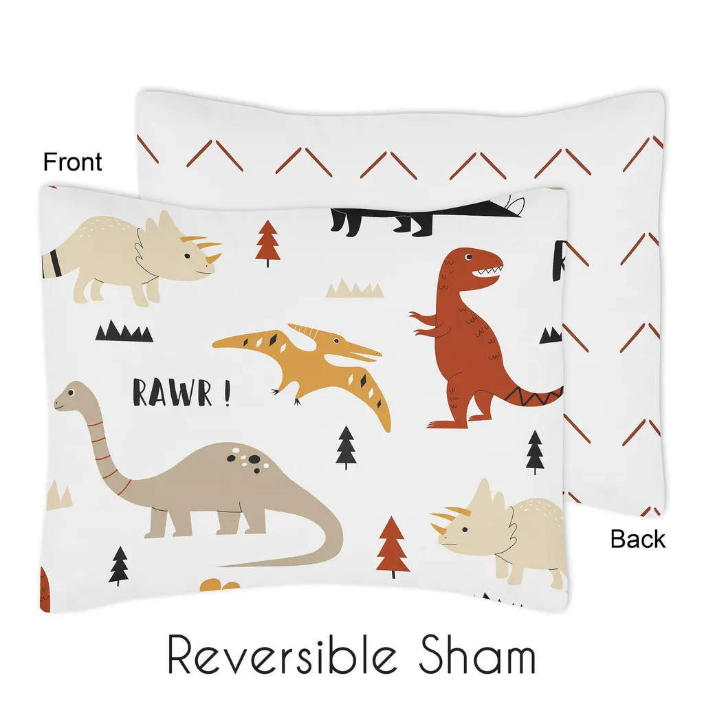 Mod Dino Boy Girl 5Pc Toddler Comforter Set - Orange Tan Rust Taupe Mustard Yellow Beige Brown Black Modern Dinosaur Boho Arrow - Orange, Tan, Taupe, Yellow, Beige, Brown, Black - Toddler