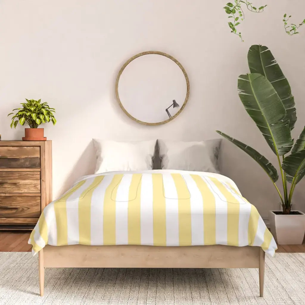 Modern Geometrical Baby Yellow White Stripes Pattern Comforter