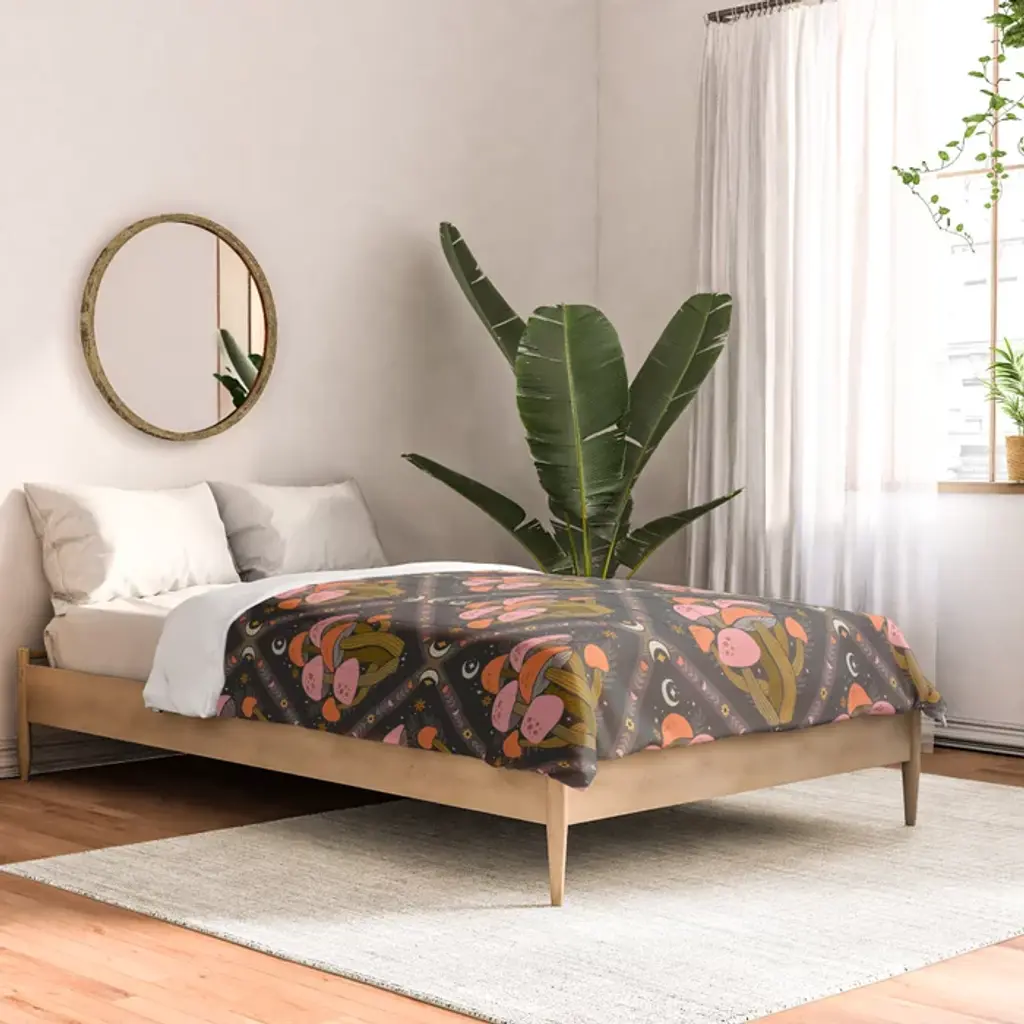Mushrooms And Moons - Dark Comforter