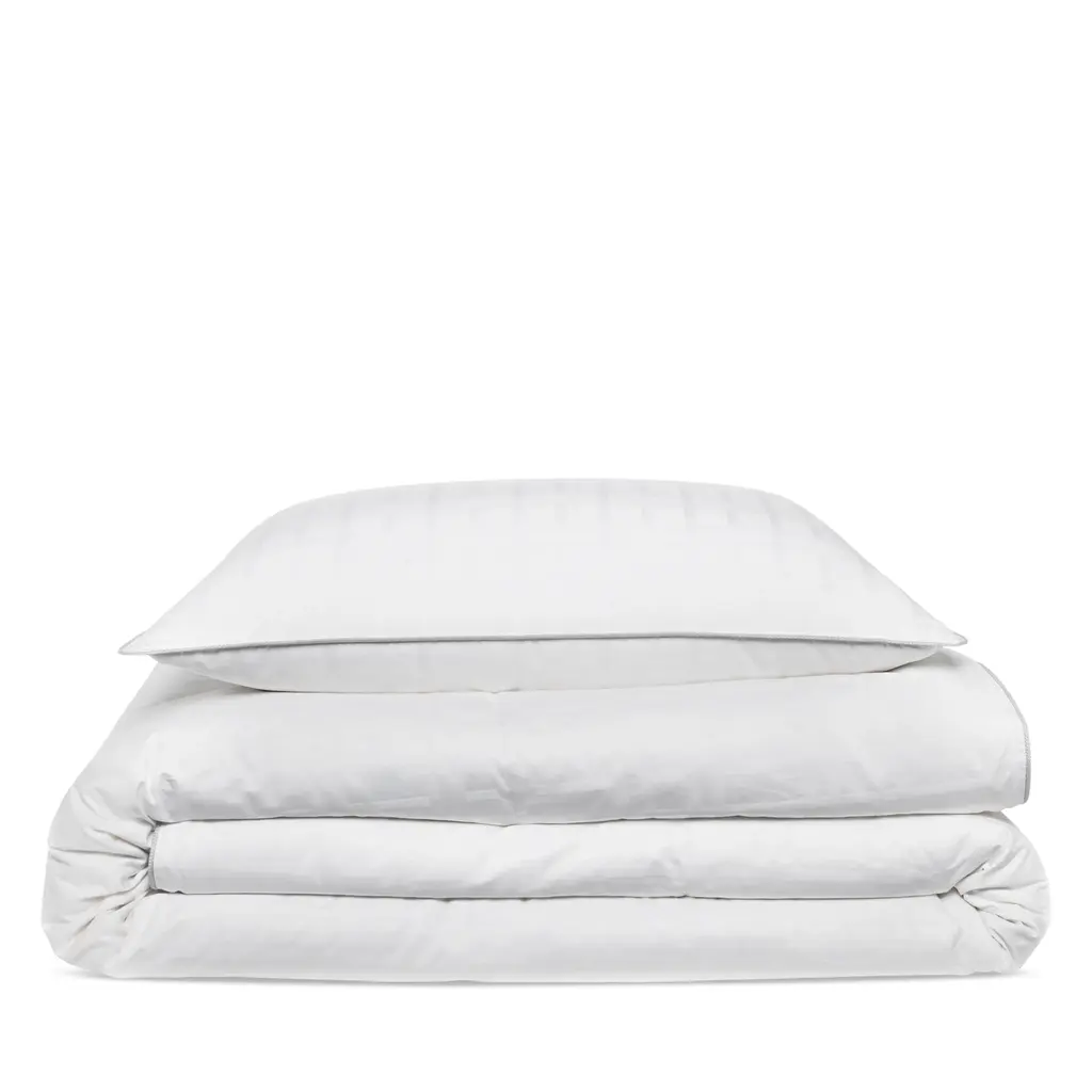 New look, same favorite comforter. Our Only at Bloomingdale's comforters can now be found under our exclusive home line, Hudson Park Collection. Designed to look, feel, and perform like natural down, this premium comforter features deluxe polyester fiber fill that delivers lofty plushness. It's ultra-soft cotton jacquard cover adds simple elegance while delivering a soft breathable sleep environment. Plus, it's AAFA certified, helping reduce allergens for cleaner, healthier sleep. LIGHTWEIGHT: Ideal for warmer months or minimal coverage Filled with 40-48 oz. of luxurious down alternative (depending on size) MEDIUM WEIGHT: Ideal for those who like a touch more insulation Filled with 50-60 oz. of luxurious down alternative (depending on size)ABOUT THE BRAND Hudson Park Collection, a Bloomingdale's exclusive, empowers you to curate distinctive spaces that look and feel like you. Known for its thoughtful designs and use of premium materials, Hudson Park Collection is helping to redefine modern living--and transforming houses into stylish, comfortable sanctuaries that inspire and uplift.
