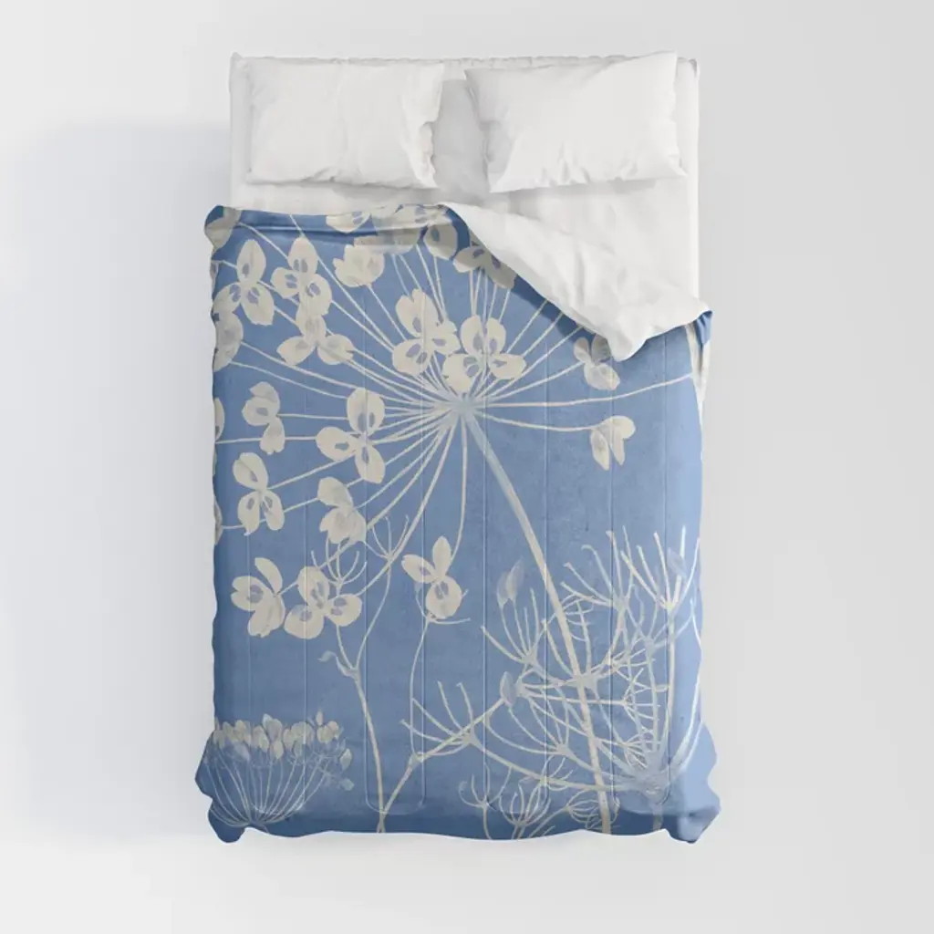 Dress your bed in classic Hydrangea blooms. Complete the scene by layering this comforter with the coordinating sheets and accent pillows (sold separately). Our breathable percale bedding collection is an excellent choice for year-round use. Rifle Paper Co.'s hand-painted designs of floral blooms and bold colors bring beauty to your everyday. Part of our Rifle Paper Co. x The Company Store collection.