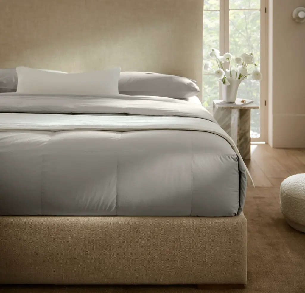 Our loftiest comforter yet, this classically quilted design is crafted in a smooth and crisp Percale weave made with naturally breathable 100% organic cotton. It’s filled with PrimaLoft® Luxury Down Alternative®, a premium, allergy-friendly fiber that mimics the weight and gentle loft of down. Ideal for all seasons, the lofty, medium-weight fill stays perfectly in place thanks to our unique bafflebox construction. The result is an effortless one-layer experience all year long. The Feel Lofty comfort in a four-season weight The Look Classic quilting for effortlessly clean lines