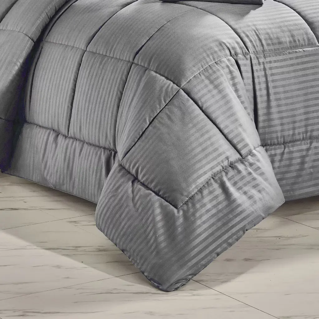 Plazatex Embossed Dobby Stripe 8 Pieces Comforter Bed In A Bag Set Queen Gray