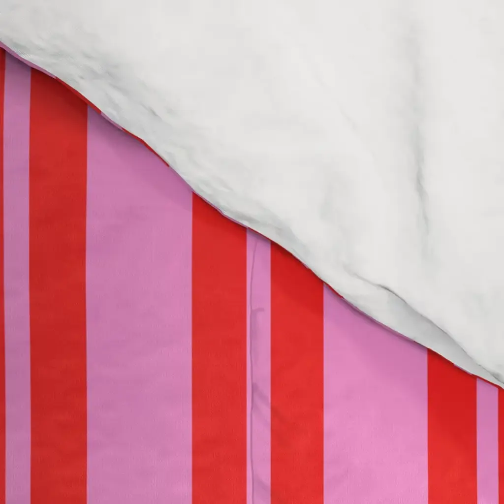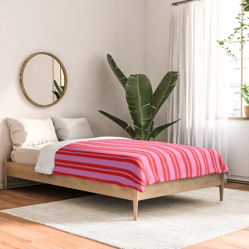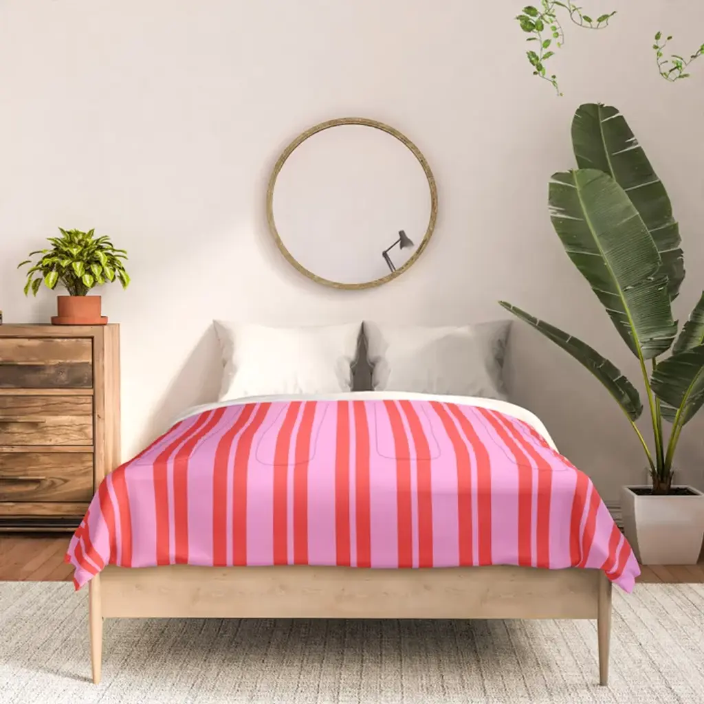 Preppy Hot Pink And Red Classic Double Stripes Contemporary Vertical Stripe Pattern Comforter