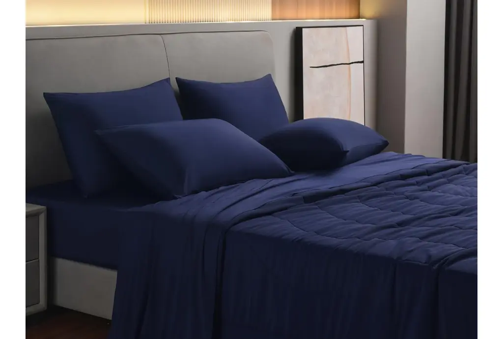 Experience ultimate comfort and style with the Rest Evercool King Midnight Blue Comforter. Designed in a rich midnight blue color, this comforter adds a touch of elegance to any bedroom. Its contemporary and modern design ensures it complements a variety of decor styles.