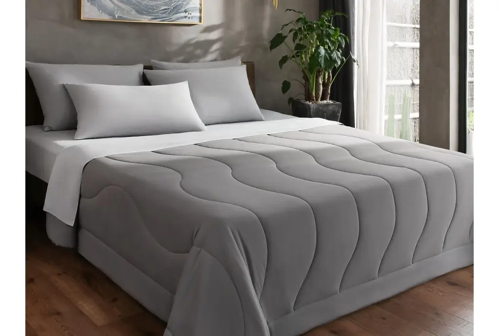 Experience ultimate comfort with the Rest Evercool Twin Cool Gray Comforter. Designed in a sleek cool gray color, this comforter is perfect for enhancing your bedroom decor while providing a cozy night's sleep. Made from high-quality nylon, it ensures durability and a soft touch.