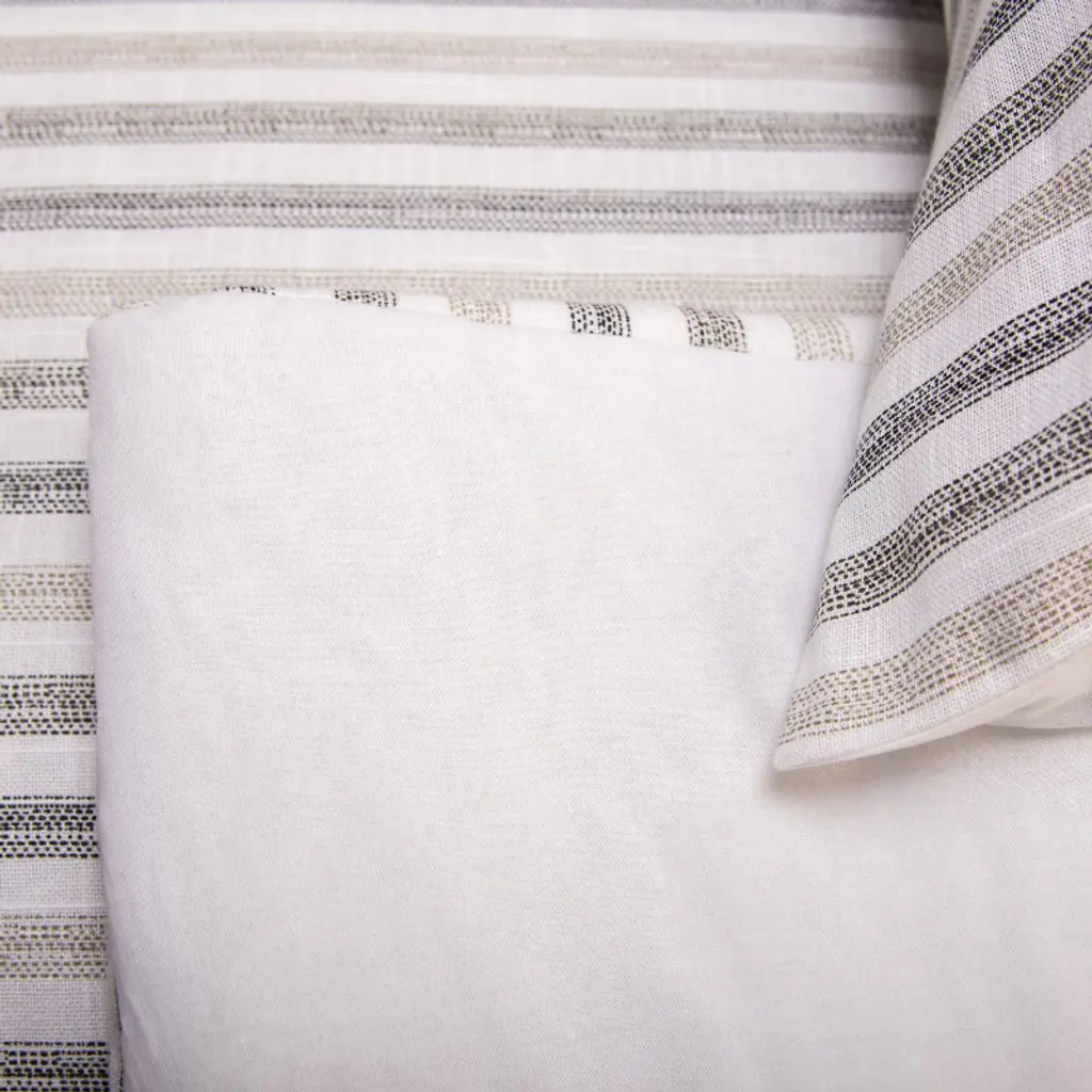 Elevate your bedroom décor with this contemporary multi-seasonal duvet-comforter with a modern industrial influence. The soft grey and natural stripes create a calming neutral palette, evoking serenity and creating a calming atmosphere for your bedroom. The best of both worlds, this comforter looks like a filled duvet, but functions like a comforter, with a cotton slub front that gives it the beautiful look of crisp linen. It has an innately stunning contemporary sophistication, that can be coordinated with modern farmhouse or traditional motifs to make the look your own. Elegance made simple, this is a timeless piece to add to your home bedding collection from Blackberry Grove by Rizzy Home.