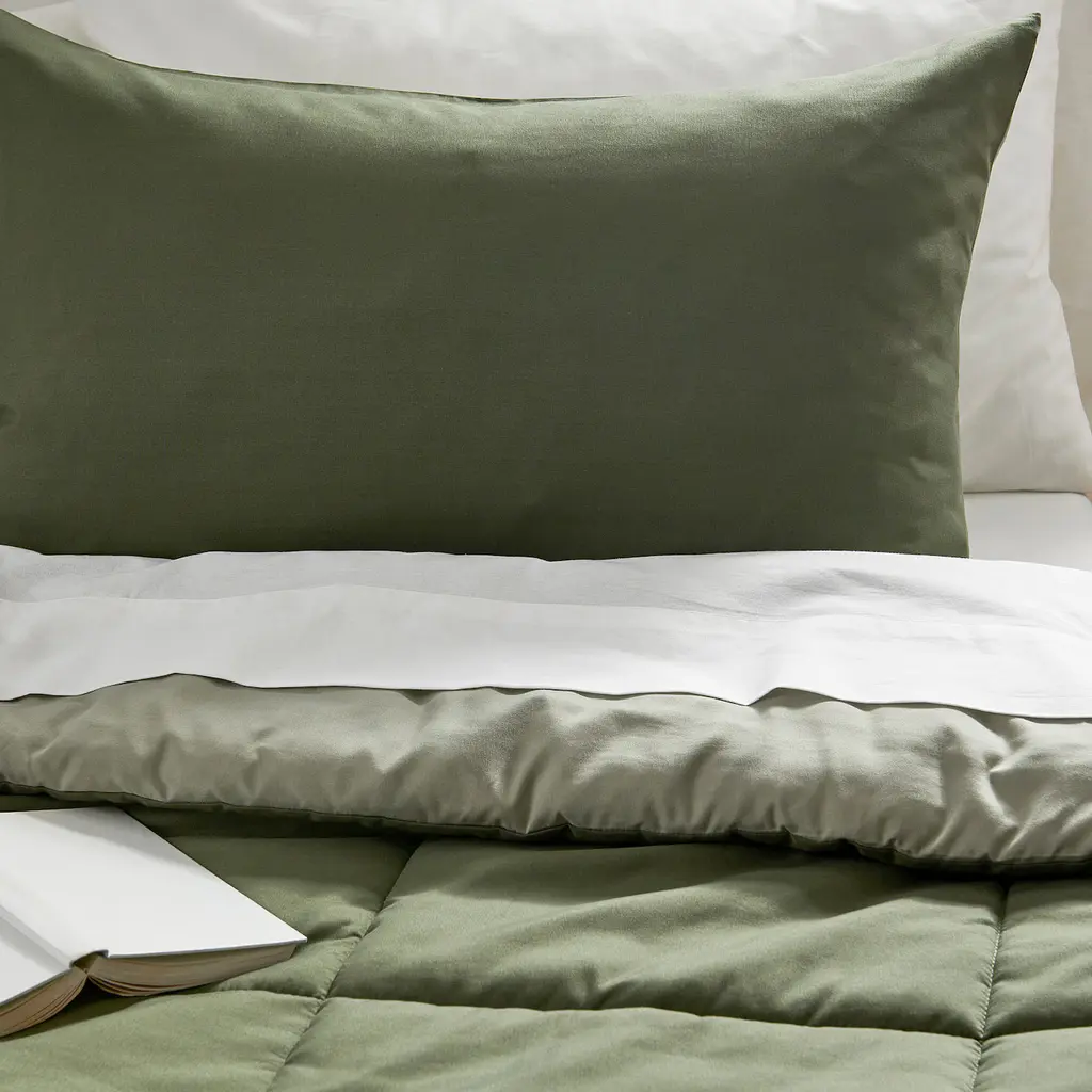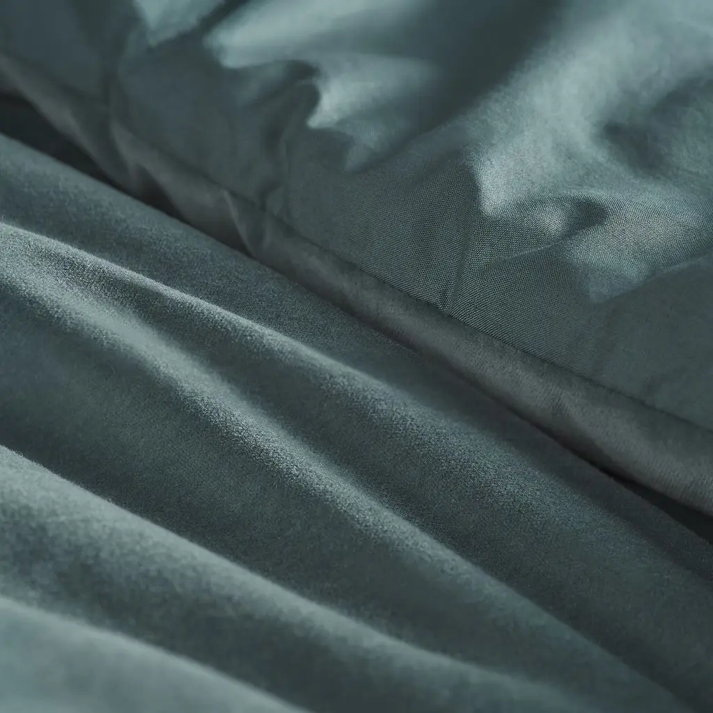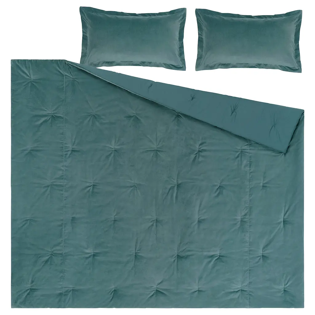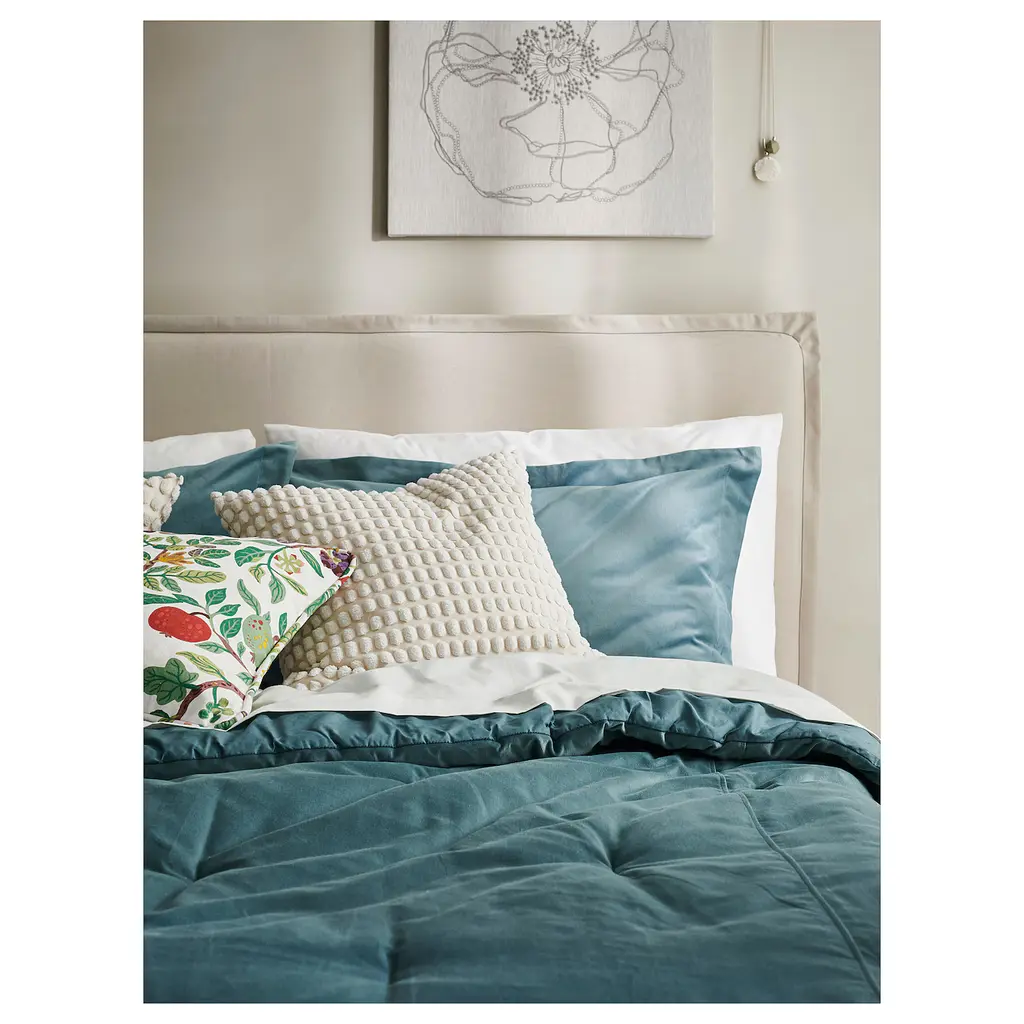SANELA Comforter set - dark gray-turquoise Full/Queen. 100% cotton fabric that breathes and feels wonderfully soft against your skin. The soft velvet surface of the comforter creates a cozy and comfortable feel while giving the bedroom a luxurious expression. 180 thread count. 8-oz filling density.
