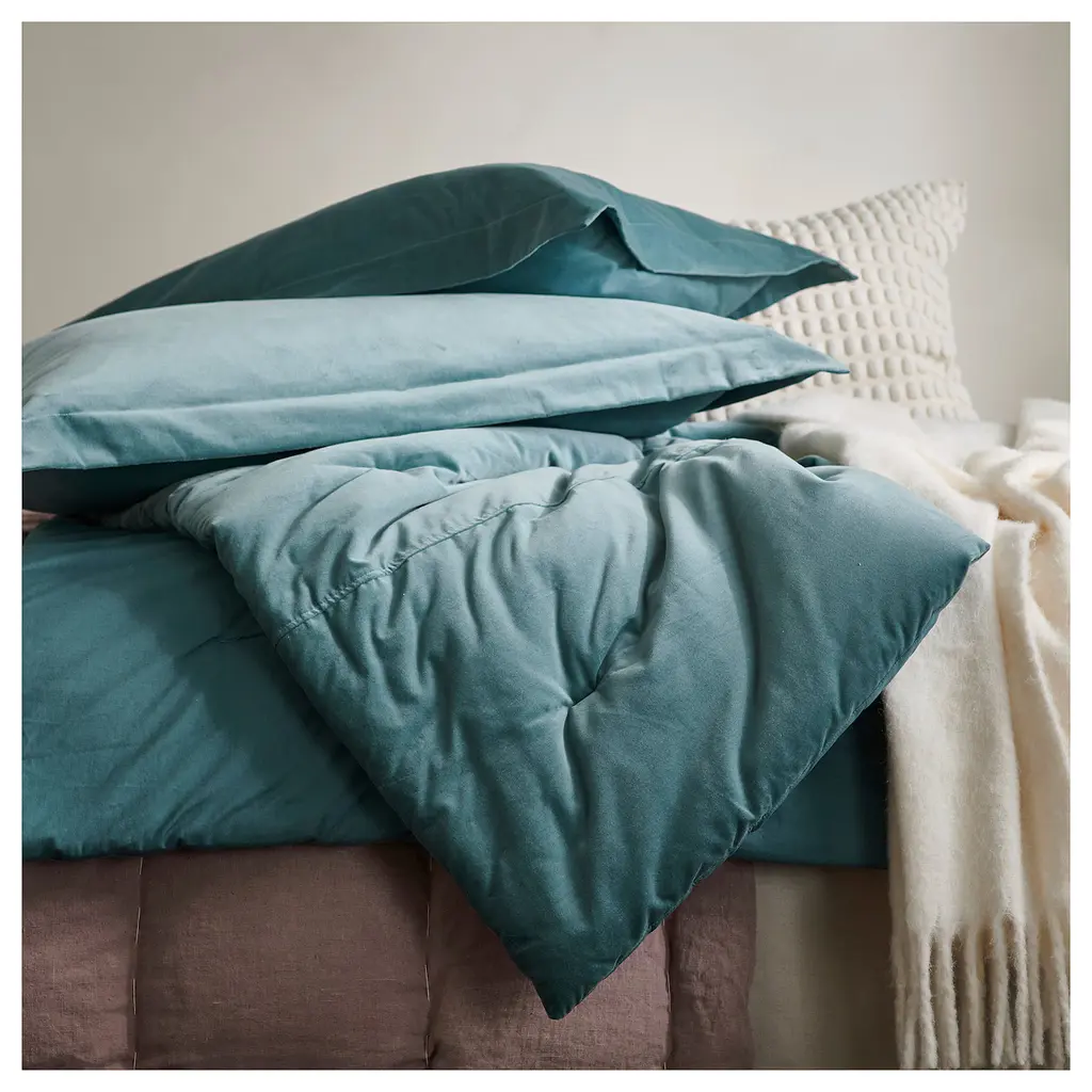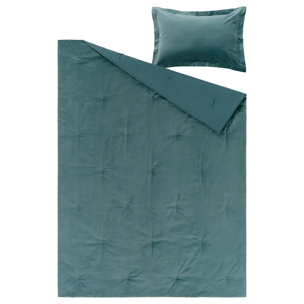 SANELA Comforter set - dark gray-turquoise Twin/Twin X-long. 100% cotton fabric that breathes and feels wonderfully soft against your skin. The soft velvet surface of the comforter creates a cozy and comfortable feel while giving the bedroom a luxurious expression. 180 thread count.