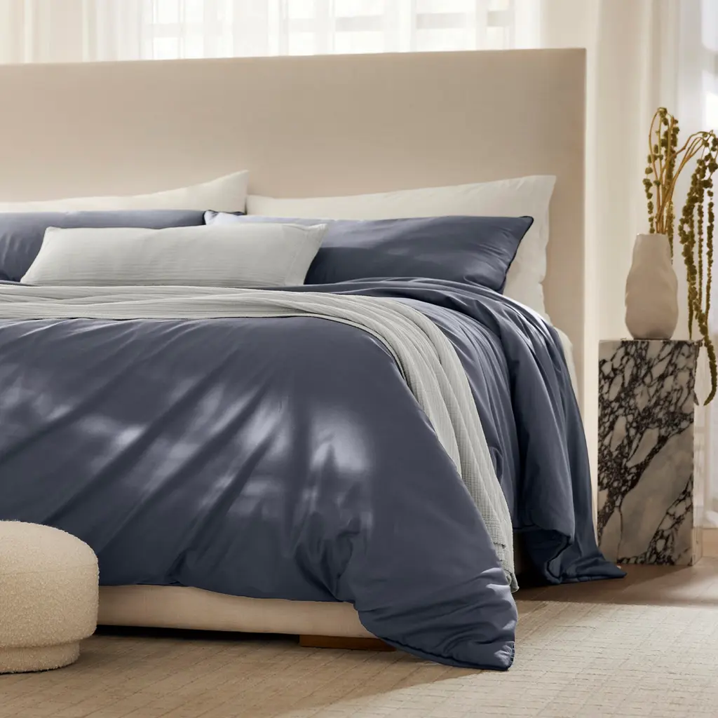 Get the look of a duvet with the ease of one layer. Reinvented with Boll & Branch's buttery, breathable cotton Signature fabric, this comforter set gives your top of bed a luxuriously soft hand-feel that gets softer with every wash. Invisible quilt stitching keeps the recycled polyester fill perfectly in place, and ensures a clean-lined finish that will maintain its shape over time.