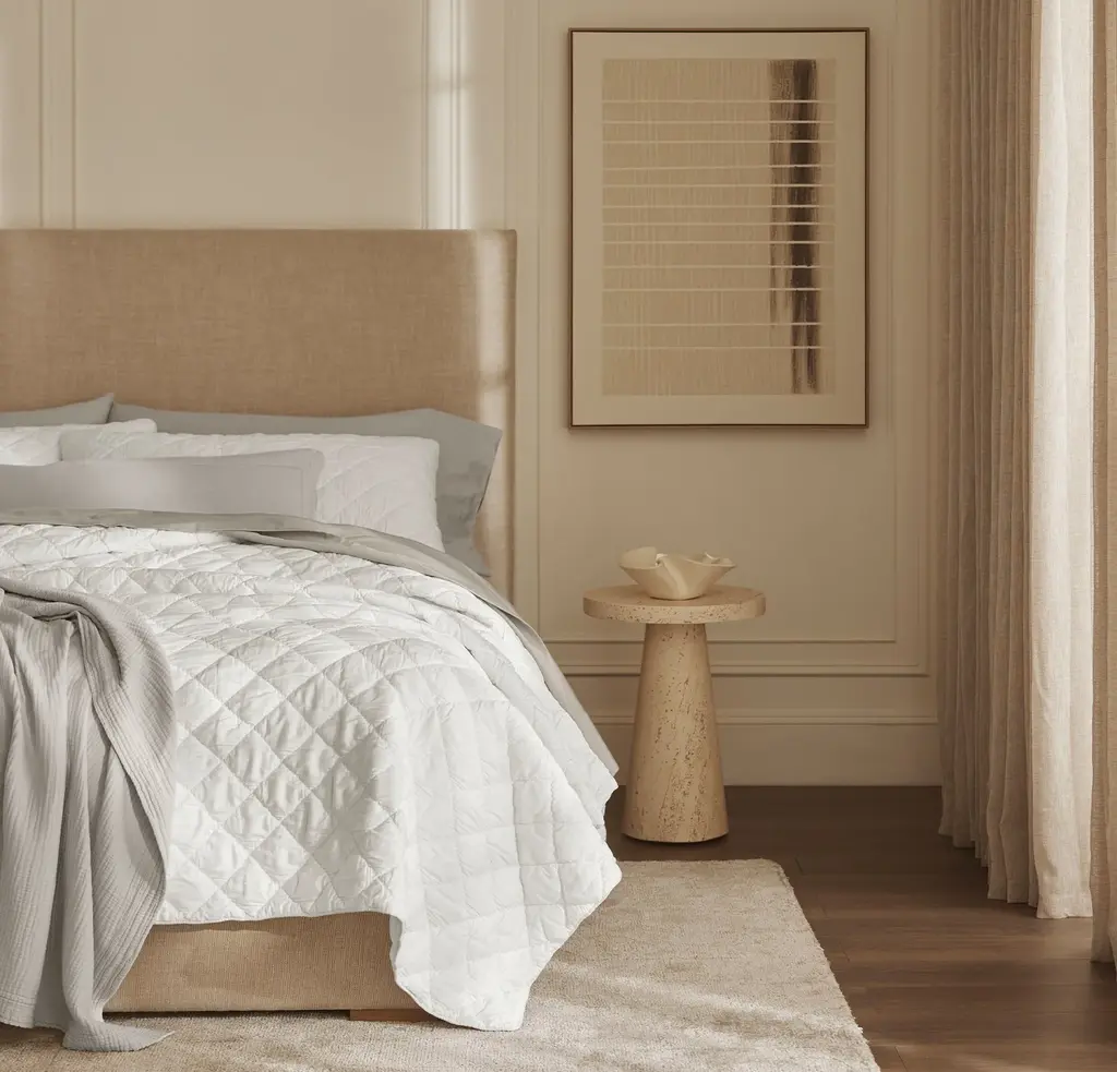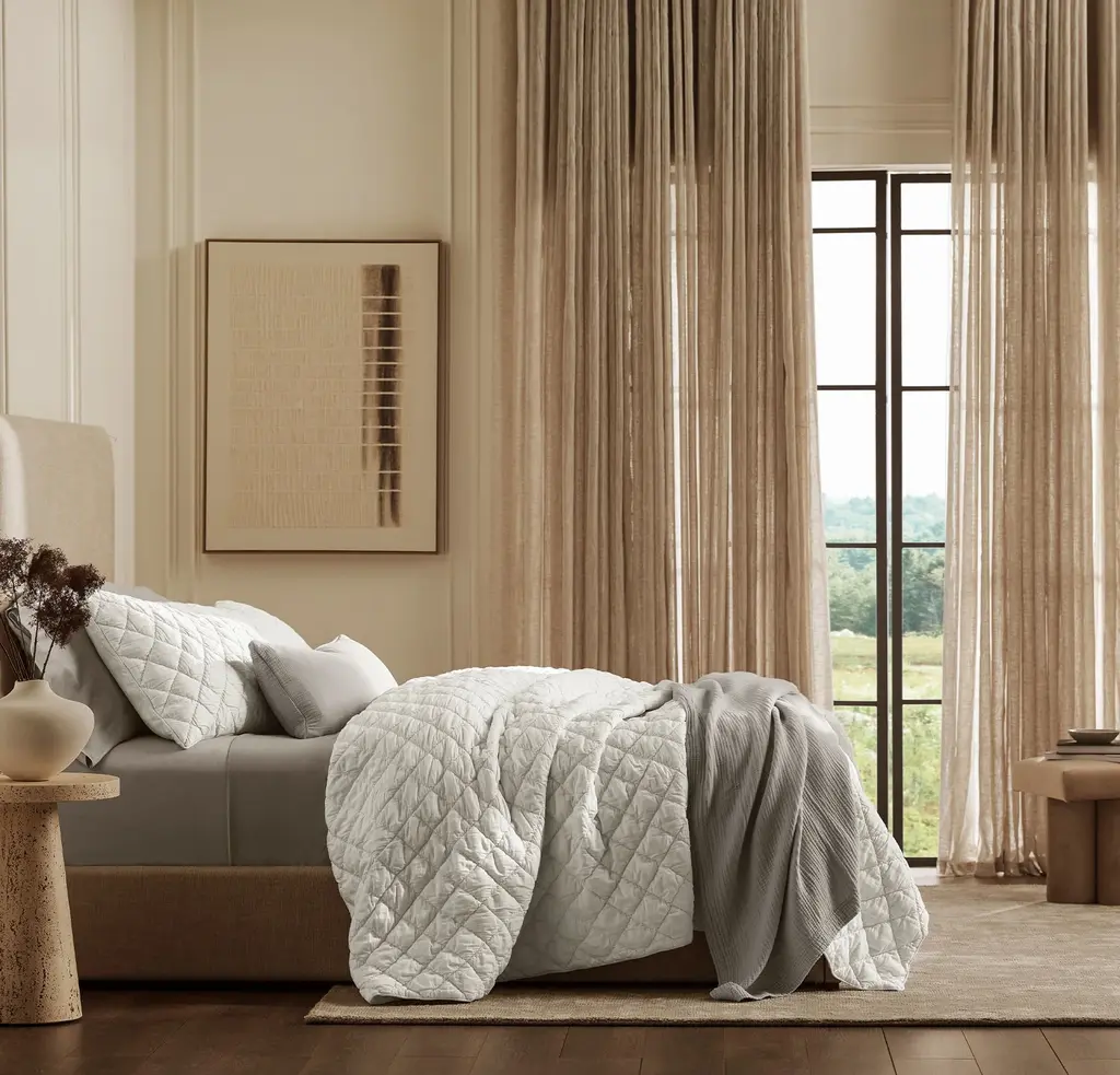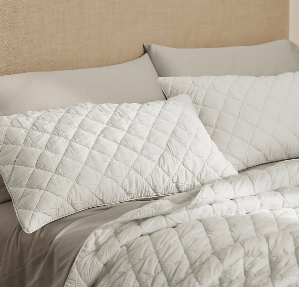An effortlessly dimensional design updates this Comforter for a cloud-like experience you’ll indulge in night after night. The buttery soft shell is made with our 100% organic cotton Signature fabric, woven to get softer with every wash. Ruched diamond quilting gives this style its lofty texture, meticulously stitched along the top and hand-finished at the back. Invisible stitching keeps the breathable cotton voile lining and lightweight fill in place, ensuring this layer’s gentle drape maintains its shape over time. The Feel Buttery soft, cloud-like dimension in an all-season weight The Look Relaxed yet refined, with airy diamond embroidery