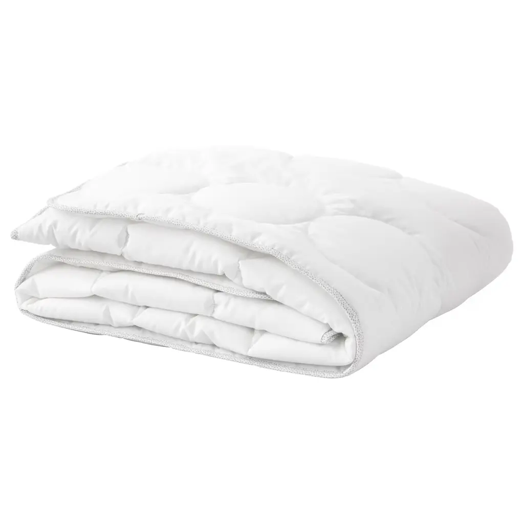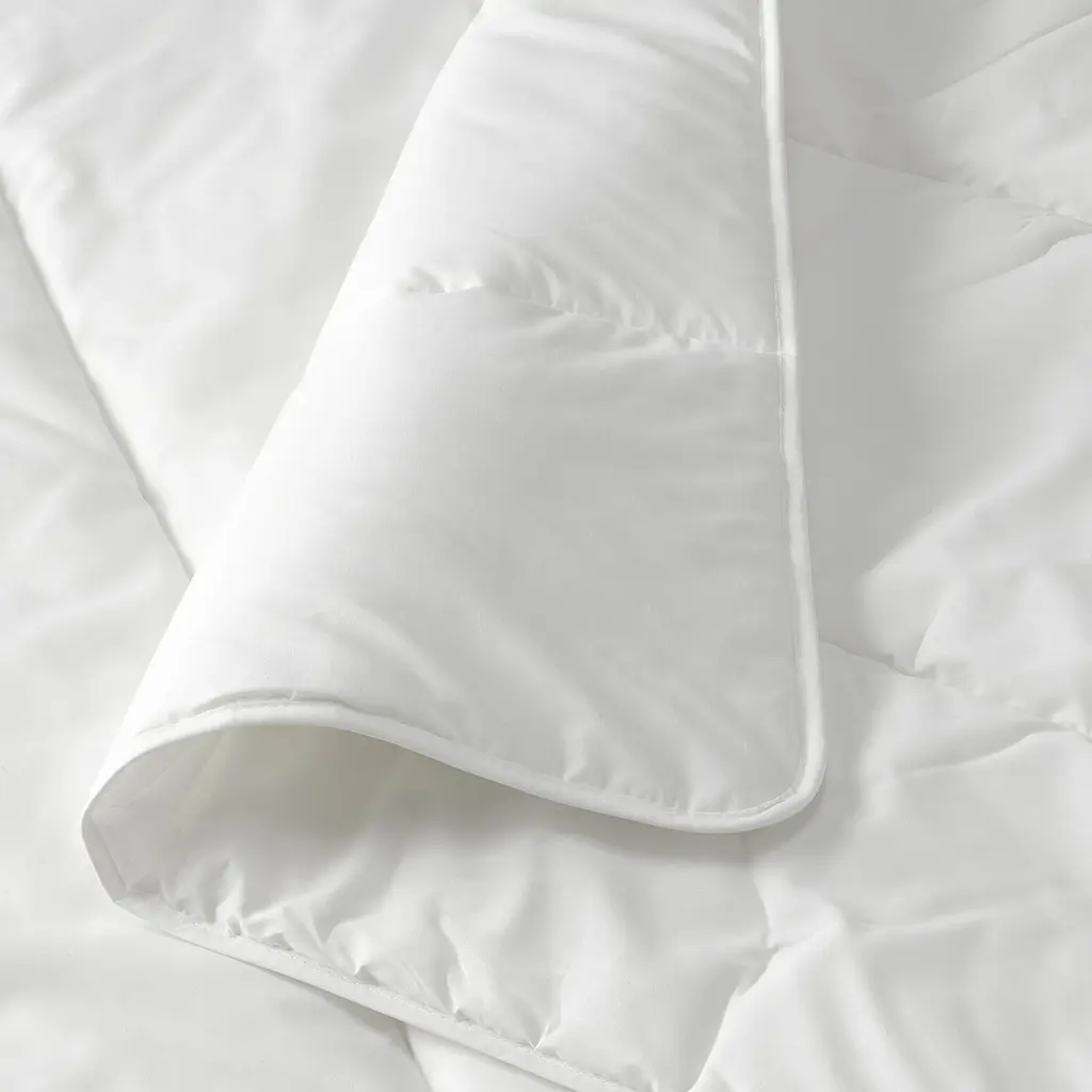 SMÅSPORRE Comforter, warm Twin. A warm, easy-care comforter in a cotton and polyester blend with a soft hollow fiber filling from recycled sources. The soft, light fibers keep their volume and insulation ability, allowing your body to breathe and maintain an even temperature throughout the night.