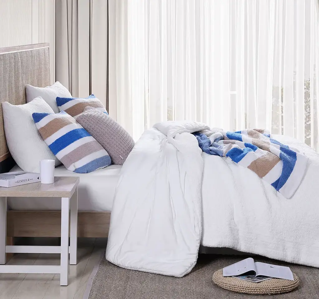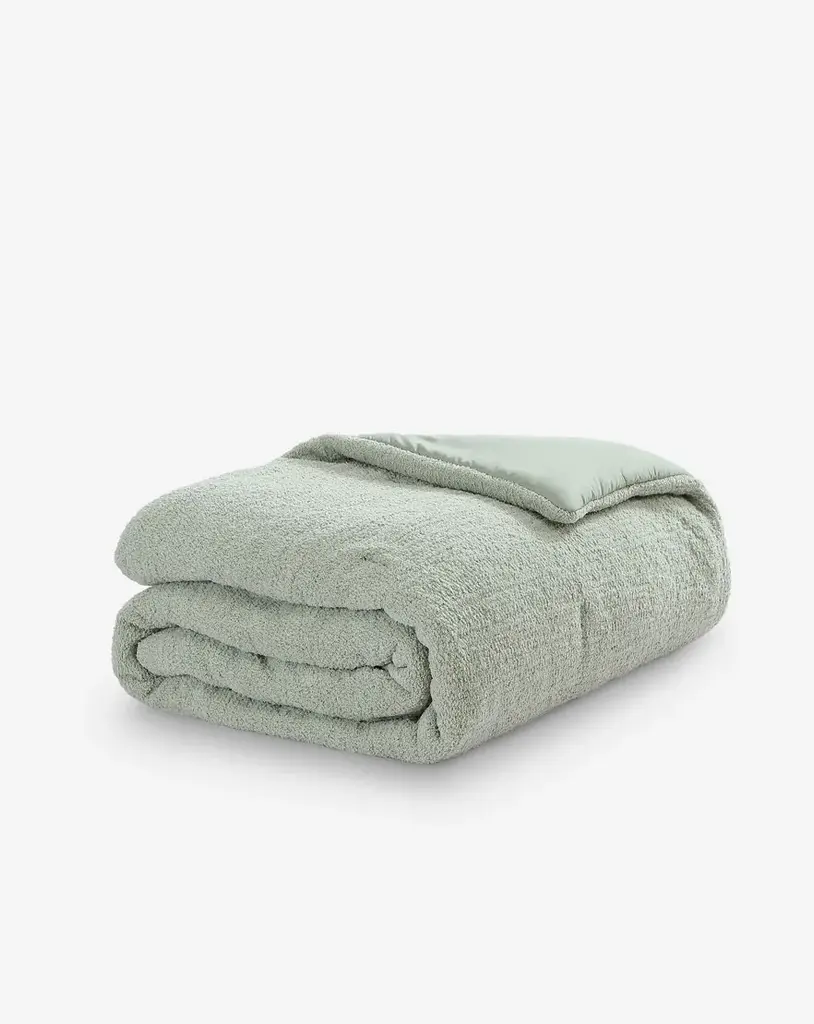 Featuring a timeless stitch pattern, this all-in-one comforter (replacing your duvet, duvet cover and top sheet) is the perfect almost-blank canvas for your bed. Snug and fluffy on top with cooling, flat sheet vibes underneath for a 100% smooth-against-the-skin feel. This bed cover is beautiful inside and out, with a cushy filling made from recycled plastic. All-in-one design (replaces duvet, duvet cover & top sheet) Snug fabric on top Viscose from bamboo underneath Filling made from 50+ recycled plastic bottles Machine washable OEKO-TEX® certified