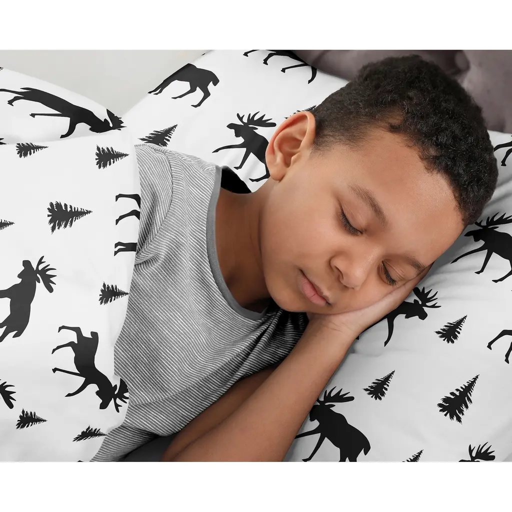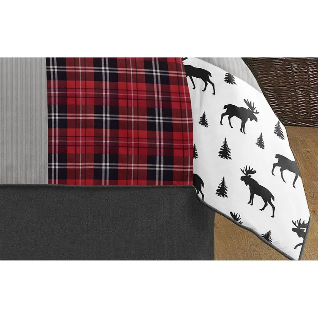 Transform your child's bedroom into a cozy and stylish retreat with our 2pc Rustic Patch kids bedding sets for boys by Sweet Jojo Designs. Designed for people who love both style and comfort, this twin size bedding set features vibrant colors & fun patterns. This twin bedding comforter sets for boys uses a sensational collection of exclusive, brushed microfiber, denim, corduroy and flannel fabrics. This all-in-one twin bed in a bag set includes a super-soft twin blanket and a matching pillow sham, offering the perfect blend of comfort and durability. The comforter features patchwork bedding set uses a sensational collection of brushed microfiber, denim, corduroy and flannel fabrics combined with applique and embroidery works of arrow embellishments. It boasts an impressive array of striking prints combining a moose print, an arrow print, a wood grain print and red plaid flannel. This collection has you covered with the perfect toddler twin bedding set for any woodland lover in your family. Our twin bedding sets for children provide softness & quality, making it perfect for those who appreciate luxury bedding without the hefty price tag. Whether you're updating your guest bedroom essentials, or upgrading your child's room, this twin bedding set is a must-have. This boys bedding sets twin by Sweet Jojo Designs will fit all standard twin size beds. 2PC TWIN BEDDING SETS FOR BOYS INCLUDES: Lightweight Comforter (62in. x 86in.) & Standard Sham (20in. x 26in.). Easy machine washable and dryable on low. This boho woodland twin comforter set for boys is made with brushed microfiber, denim, corduroy and flannel fabrics and features contemporary color palette of grey, red & black. WOOD LAND RUSTIC THEME: This twin boys bedding set boasts a soft blanket & pillow case sham. The bed comforter features striking prints combining a moose print, an arrow print, a wood grain print and red plaid flannel. This twin bed set has a matching pillow sham with the same patchwork print.