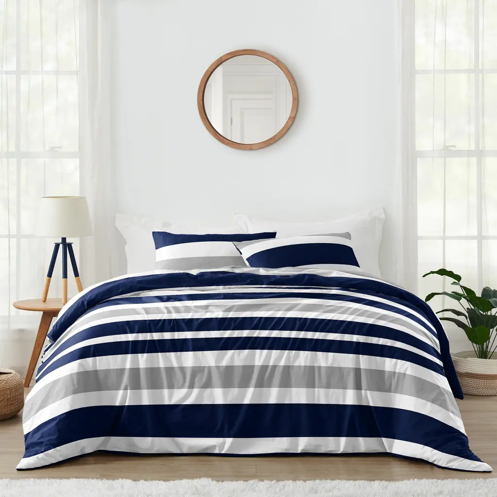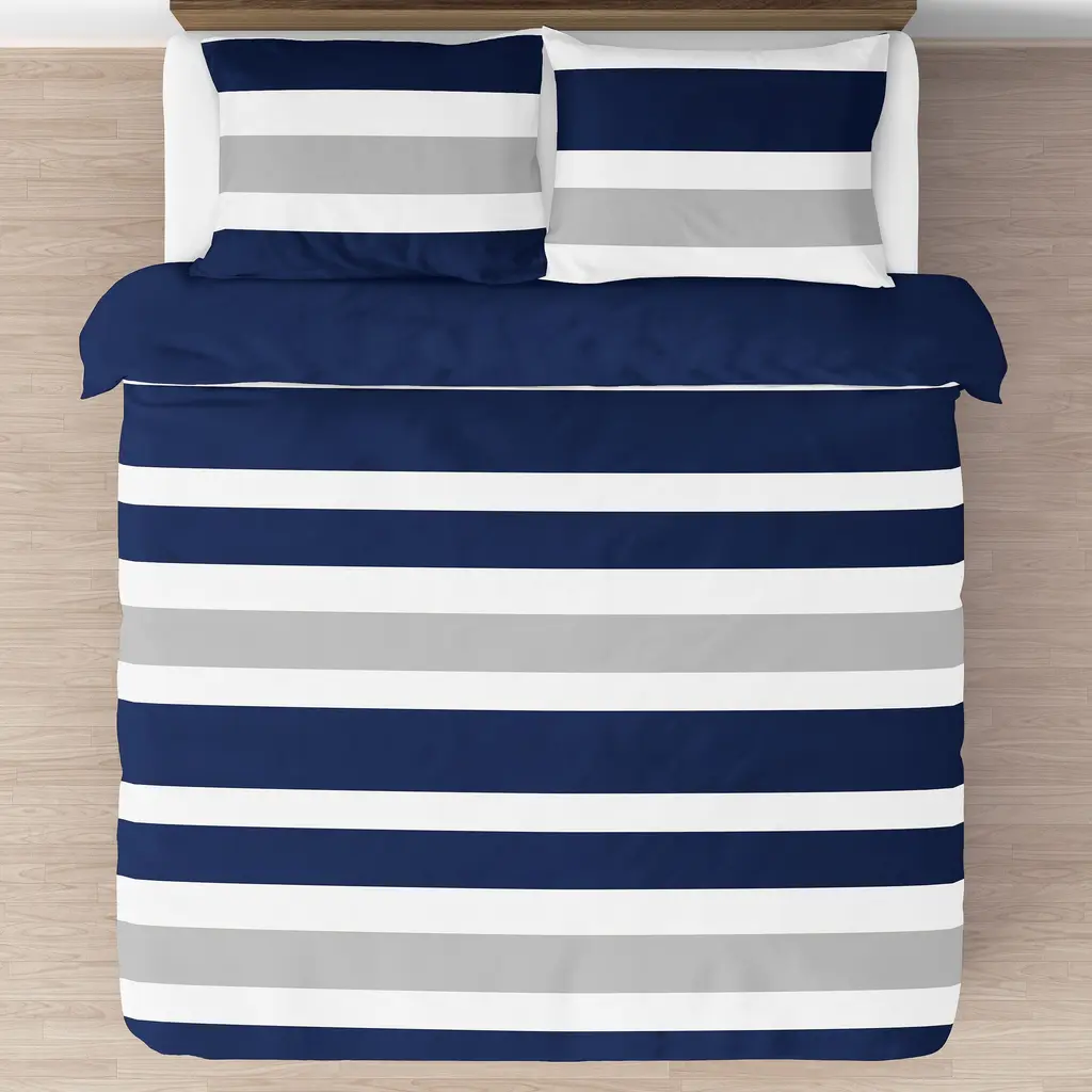Sweet Jojo Designs Navy Blue And Gray Stripe 3-Piece Full/ Queen-Size Comforter Set - Multi - Queen/full - Queen/full