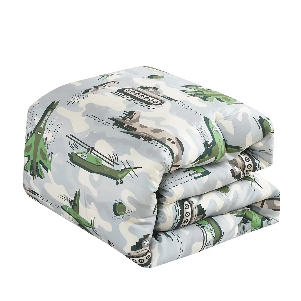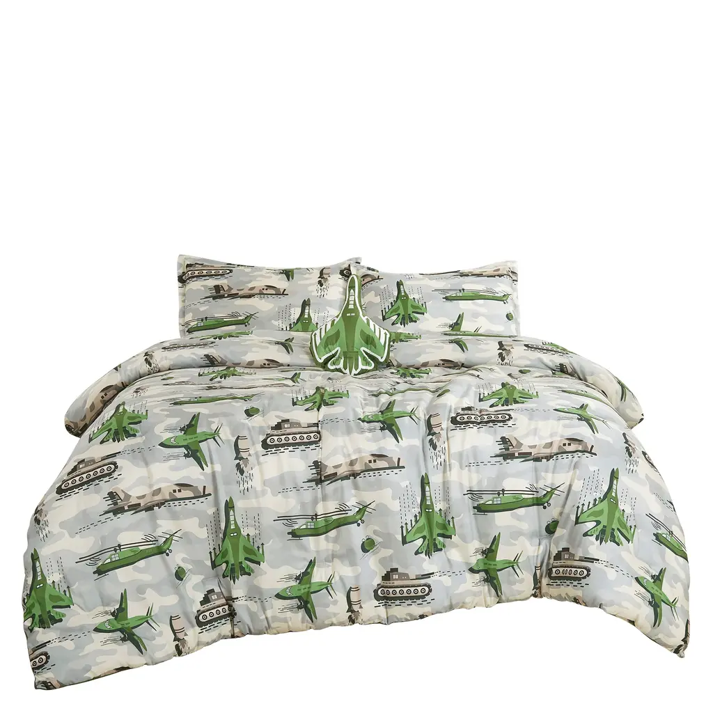 Dimensions: Twin Comforter: 68 x 86 inches Pillow Sham X1: 20 x 26 inches 1 PC Toy Cushion Full/Queen Comforter: 86 x 86 inches Pillow shams X2: 20 x 26 inches 1 PC Toy CushionMaterial: PolyesterMachine washable and tumble dry low