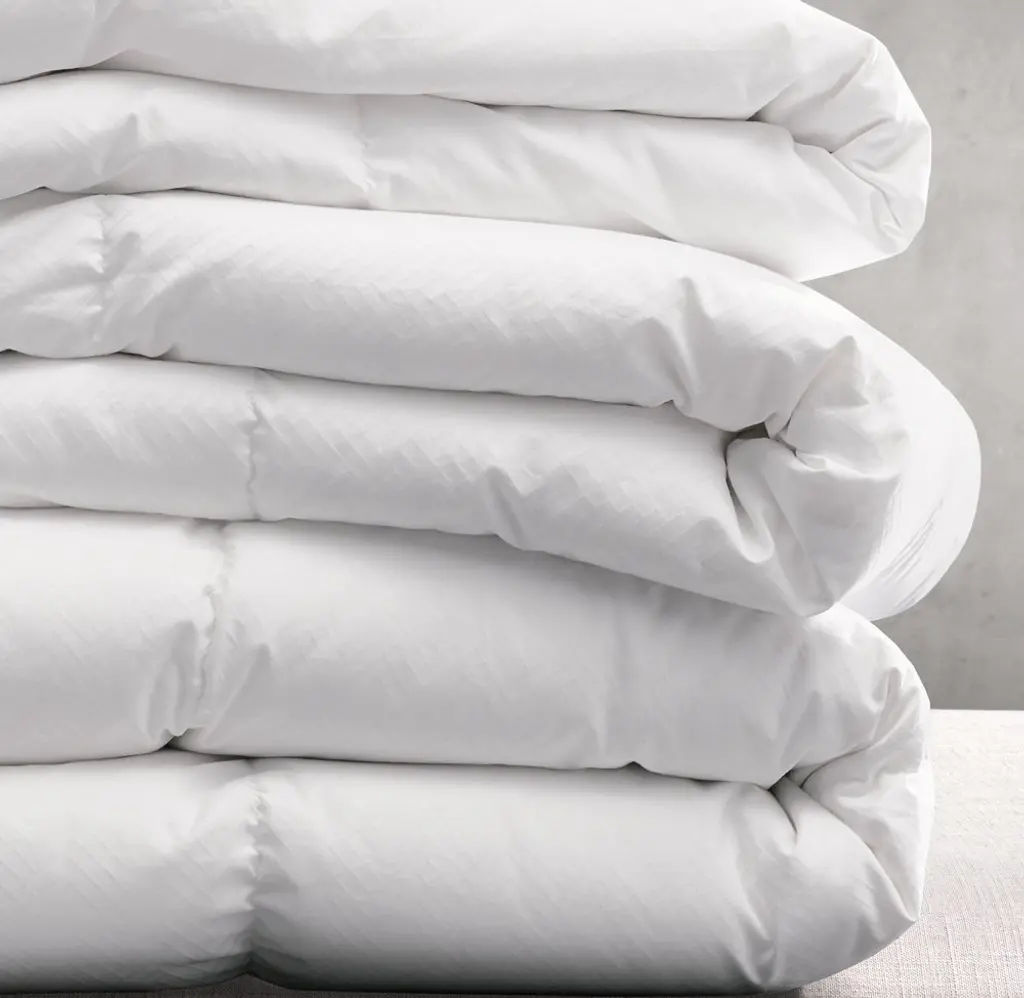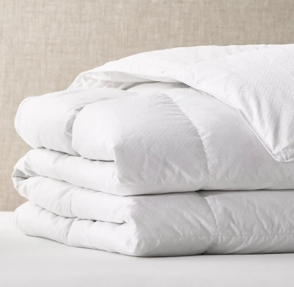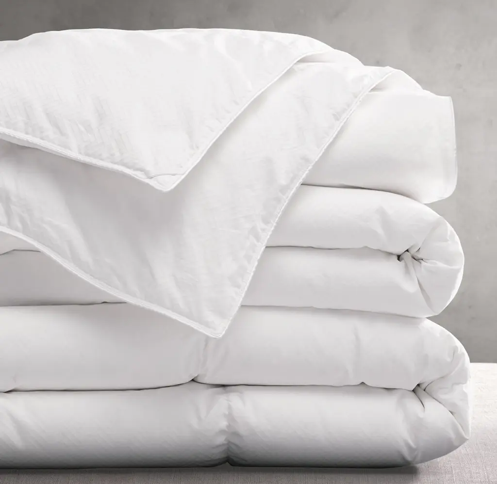 FREE SHIPPING Generously filled with premium, hypoallergenic European white goose down, among the finest in the world, our comforter offers enveloping softness, cloudlike loft and insulating warmth – the hallmarks of high-quality down. Ultimate 800-fill-power down is expertly tailored inside a fine, Jacquard-woven cotton shell, while the comforter's baffle-box construction ensures even warmth.