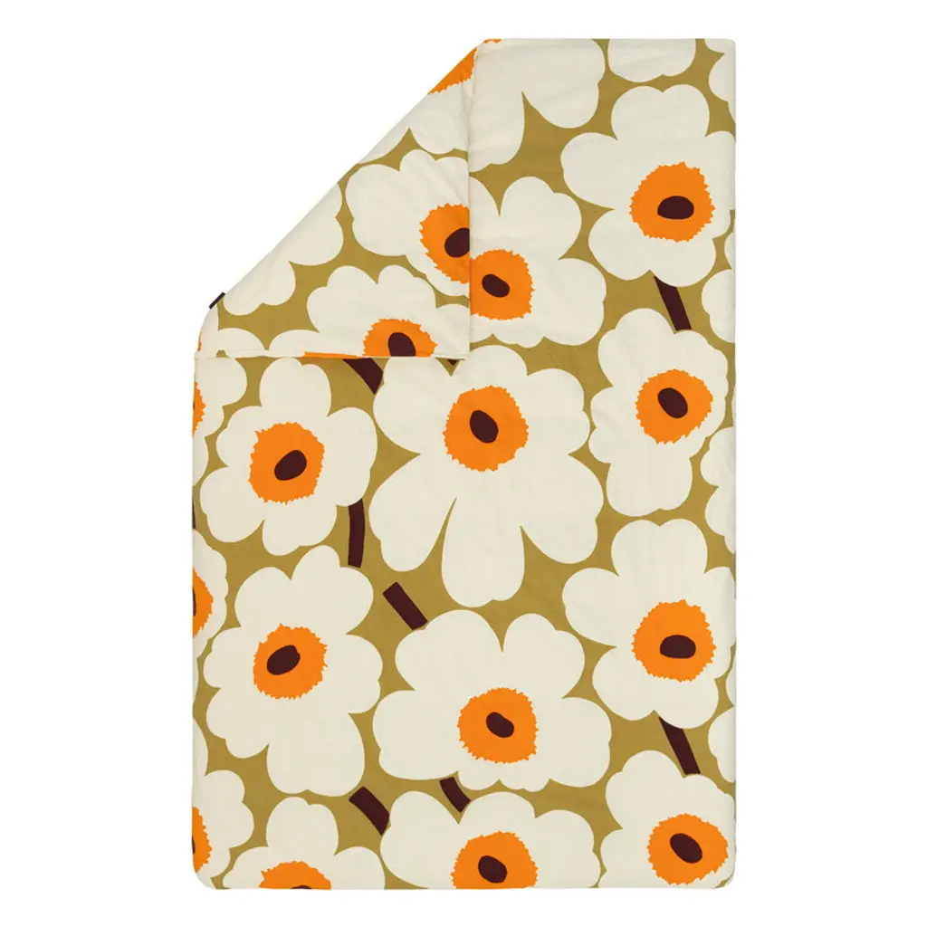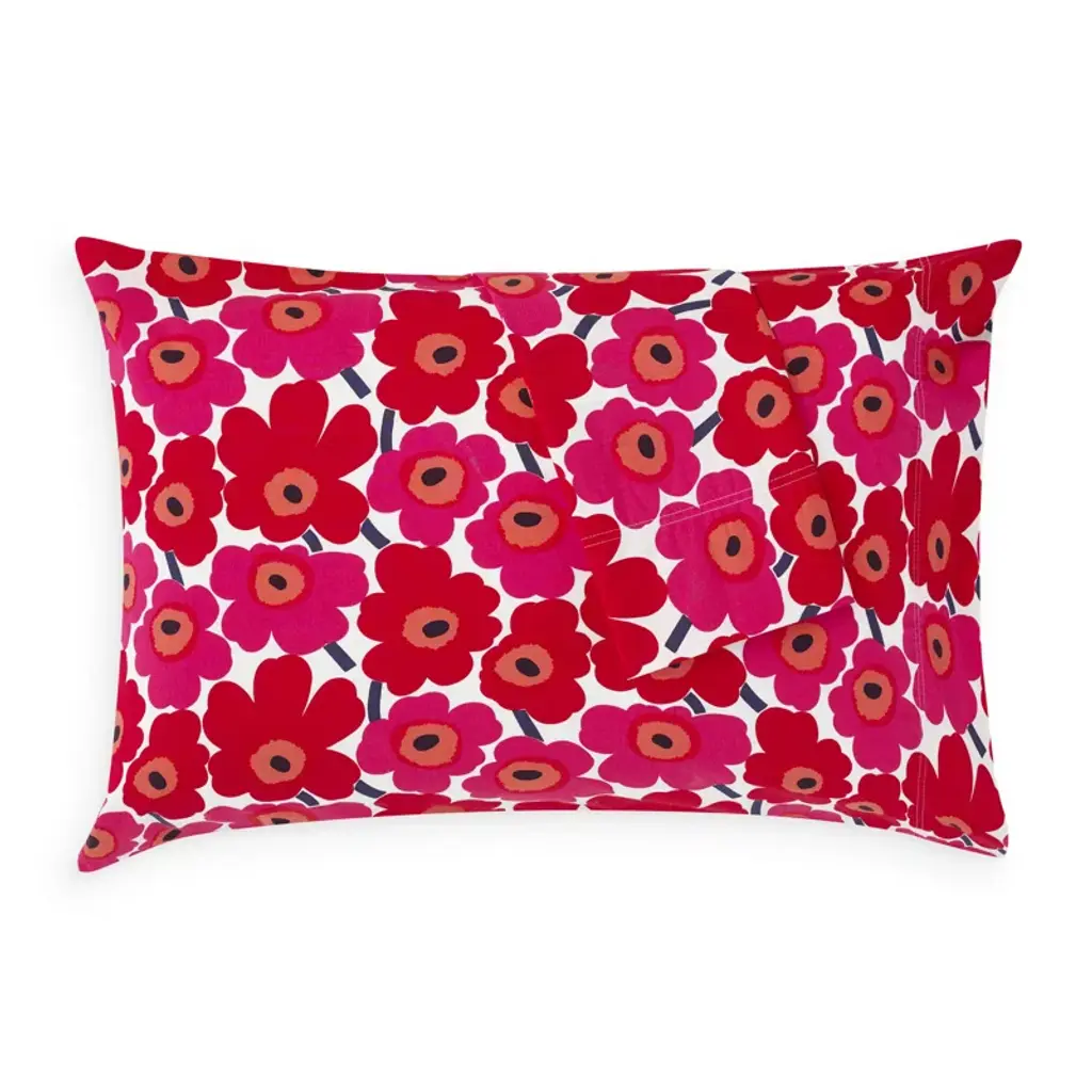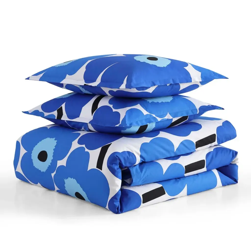 The Unikko pattern is a true classic and part of Marimekko's first floral collection designed in 1964. Crafted in soft cotton percale, the bold, vibrant blooms across the comforter, duvet cover and shams of this bedding collection lend a cheerful pop of color to any bedroom.
