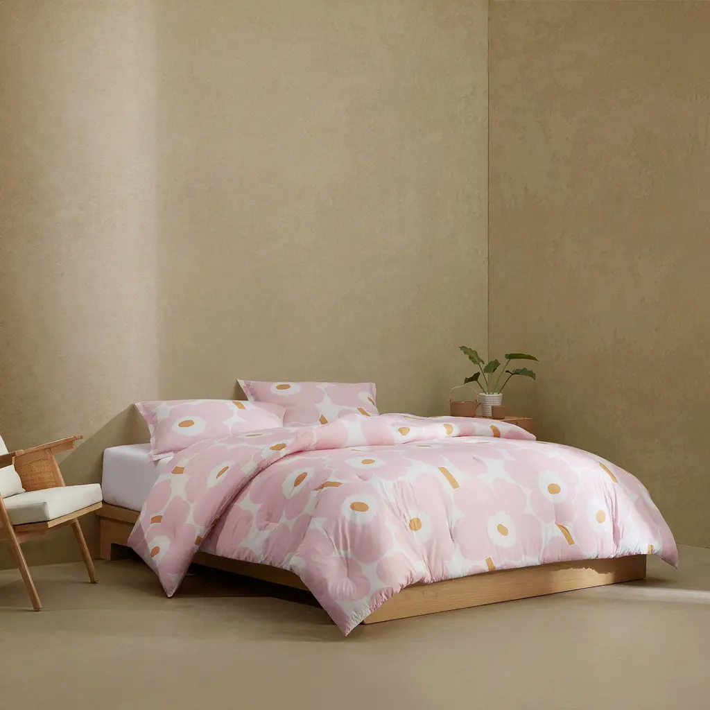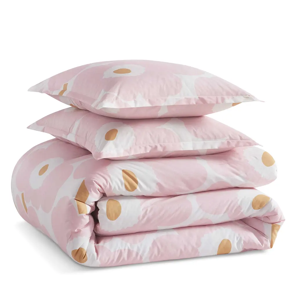 The Unikko pattern is a true classic and part of Marimekko's first floral collection designed in 1964. Crafted in soft cotton percale, the bold, vibrant blooms across the comforter, duvet cover and shams of this bedding collection lend a cheerful pop of color to any bedroom.