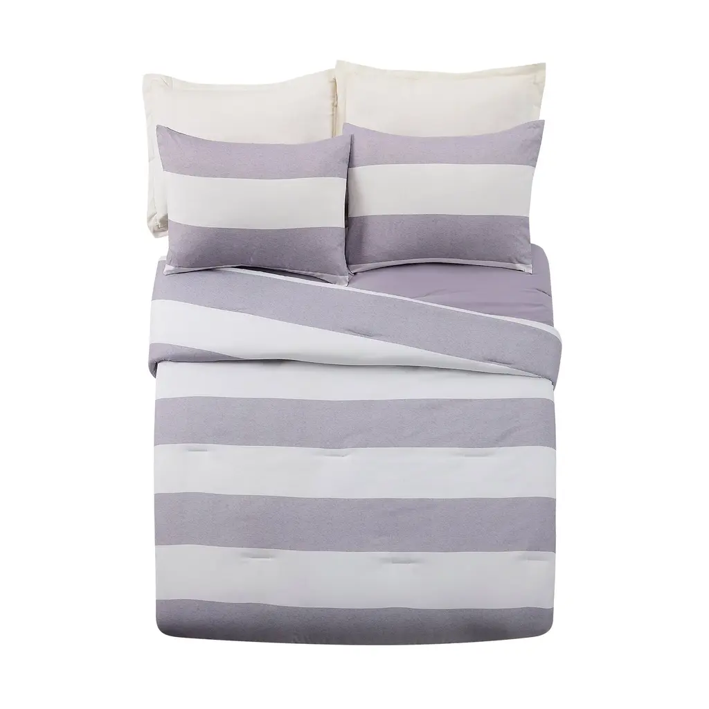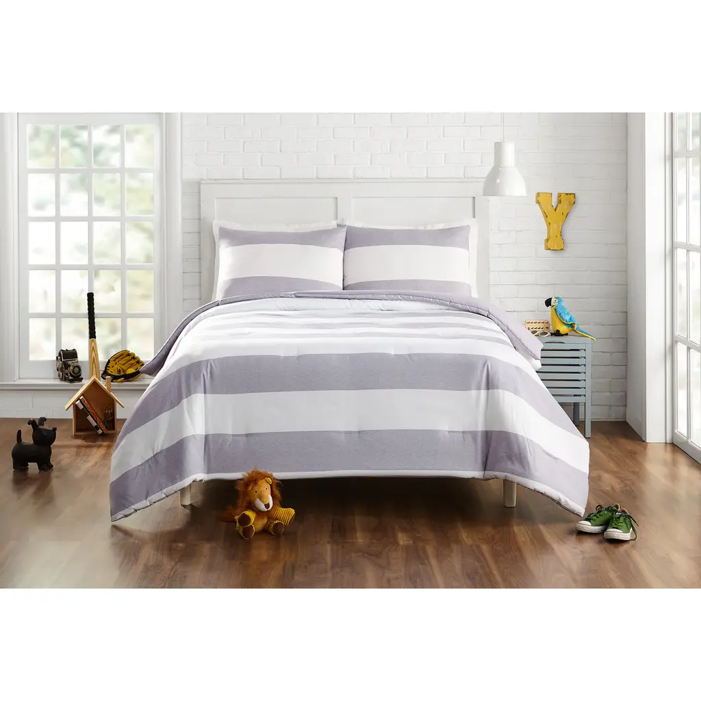 Make sure your little sport gets a good night's rest with the Lavelle Comforter Set. This bold and versatile printed stripe adds a modern touch to your room. The printed face reverses to a solid making this comforter completely reversible. This easy care set is made of super soft brushed polyester. Twin/XL Twin set includes one matching sham; Full/Queen set includes two matching shams.