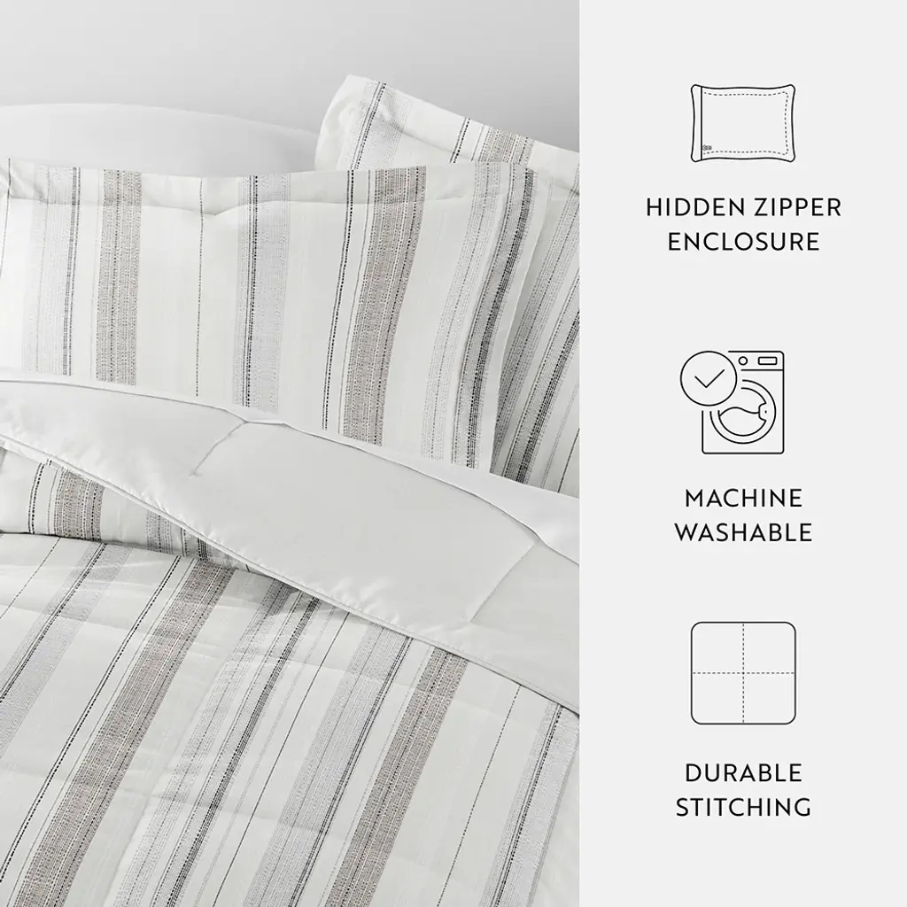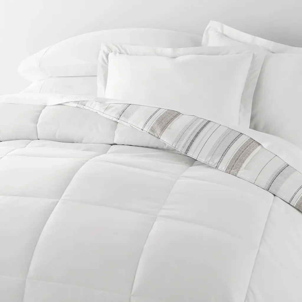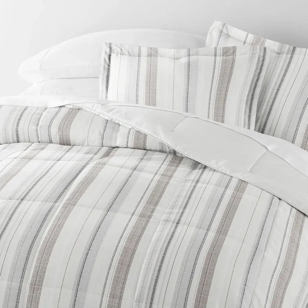 Vertical Stripe Reversible Down-Alternative Comforter Set