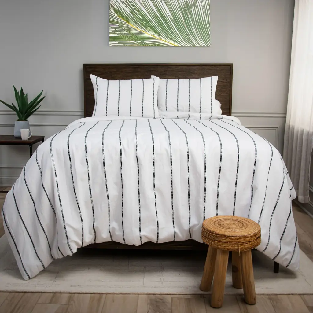 The Willow Lane Comforter adds airy softness and timeless texture to your bedding. With a cotton slub front that mimics linen, it features a stitched fill and multi-seasonal weight. Available in Queen and King sizes with a split back sham, this comforter brings effortless elegance to any bedroom.