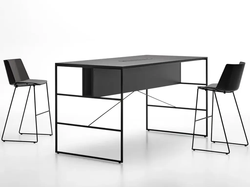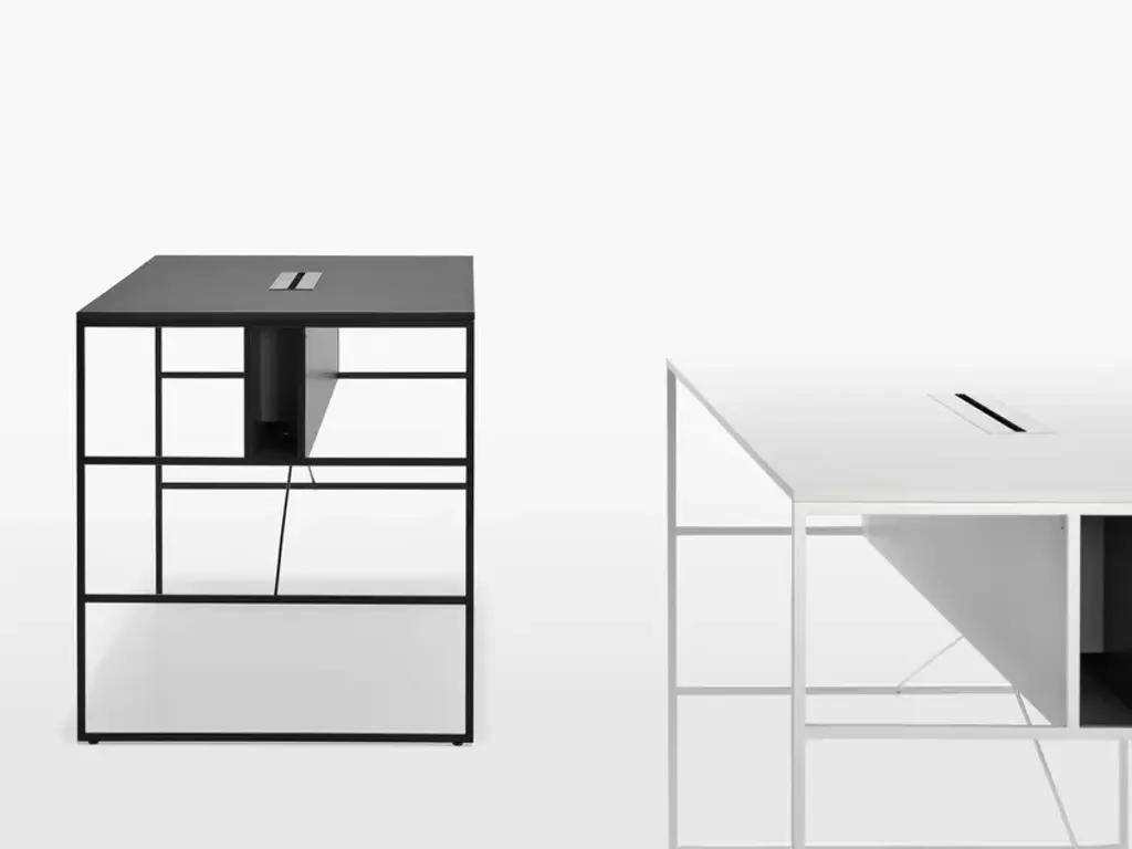 This office system features a linear iconic design typical of MDF Italia’s “DNA”.A reflection on the desk, the archetypal workstation, proposes to create an office atmosphere in a contemporary key.The contrast between full and empty volumes, the carefully studied combination of various finishes and the cables built into the bearing frame define a renewed proposal for office furnishings.The technical challenge starts from the use of a slender frame generated by a 20x20 profile, a feature that perfectly merges with MDF Italia’s other table and storage collections.The collection 20.Venti includes both individual tables and double workstations, which can be aggregated, and a wide selection of screens and accessories.An intentionally iconic system that renounces unidentifiable stylistic solutions. Basic minimal style that enhances both design and function.Designed by 967Arch for MDF Italia to offer an extensive choice of dimensions and finishes for working areas, management offices and residential settings where tables for nomadic technological work are becoming a common trait.2FrameSteel frame and legs, section 20x20 mm, painted with epoxy powder in the matt colours white and graphite grey.Structural wireway made of medium density fibreboard two- tone surfaced panels, thickness 2cm, with the outside in matt colours white or graphite grey, and the inside always in medium grey. Tops are made of medium density fibreboard panels covered with Fenix NTM laminate in the matt colours white, light grey, medium grey and black. 0Dimensions and typesSingle desk, table depth 90 cm, length 160, 180 and 200 cm, height 75 cm and adjustable aluminium foot with range of +/- 1 cm.Workstation two users, table depth 160 cm, lengths 160 and 180 cm; height 75 cm and adjustable aluminium foot with range of +/- 1 cm.Workstation four users, table depth 160 cm, lengths 320 or 360 cm; height 75 cm and adjustable aluminium foot with range of +/- 1 cm.Flex workstation, table depth 160 cm, in sizes that can be customised as required by using terminal or intermediate modules in the lengths 160 or 180 cm; height 75 cm and adjustable aluminium foot with range of +/- 1 cm.High workstation, table depth 100 cm, lengths 160, 180 and 200 cm; height 110 cm and adjustable aluminium foot with range of +/- 1 cm.