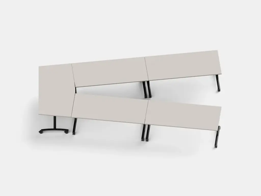 Sophisticated aesthetics and advanced functionality, the Archimede AP table on castors with a pentagonal flip-top is designed to meet the need for a flexible arrangement of contemporary professional spaces. The fine diamond design of the top, gives this model of the Archimede table on castors an original appearance and contributes to its functional versatility, allowing you to create ‘V’ compositions to make larger meeting tables. Perfect for furnishing meeting rooms, conference areas, training rooms and multimedia rooms, this table with flip-top and castors is also a smart solution for the home office. Available in different lengths and depths of the top and customisable with numerous finishes and colours, the Archimede table can be accessorised and can also be made in the GPP version on request.