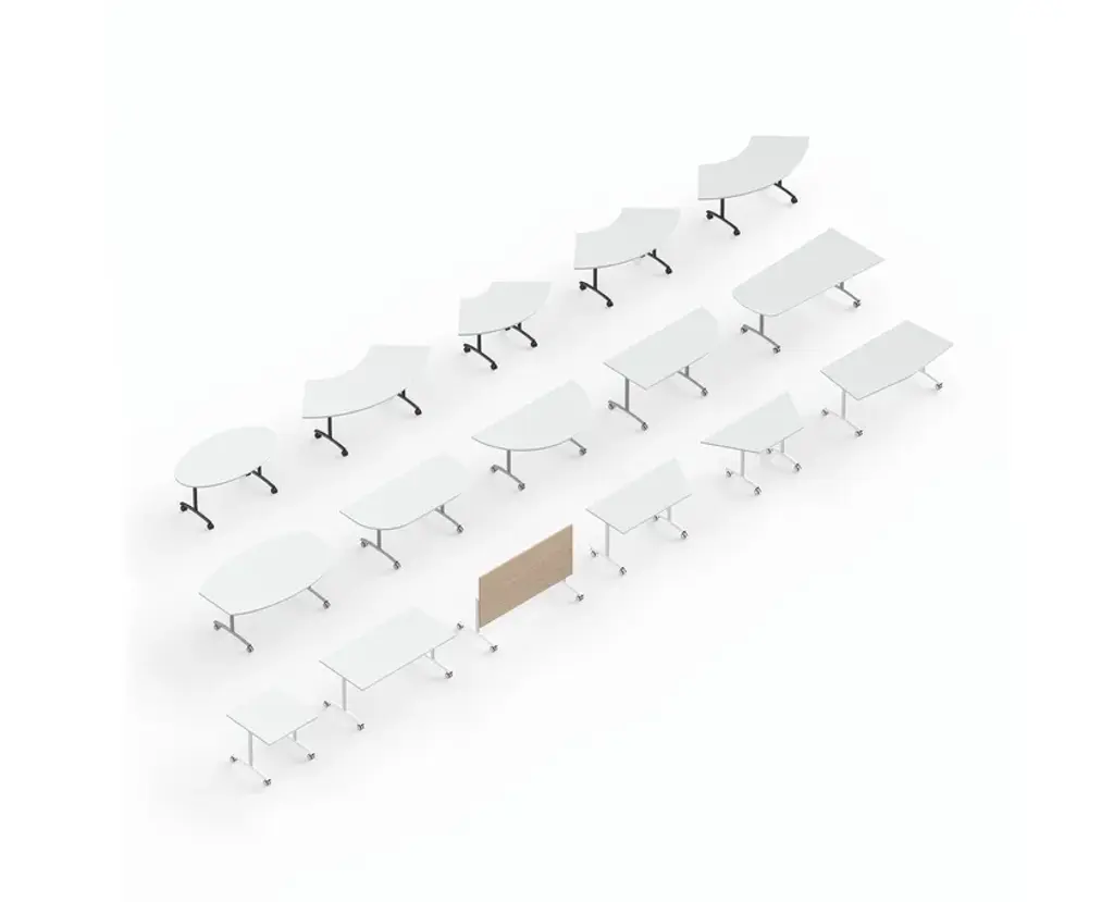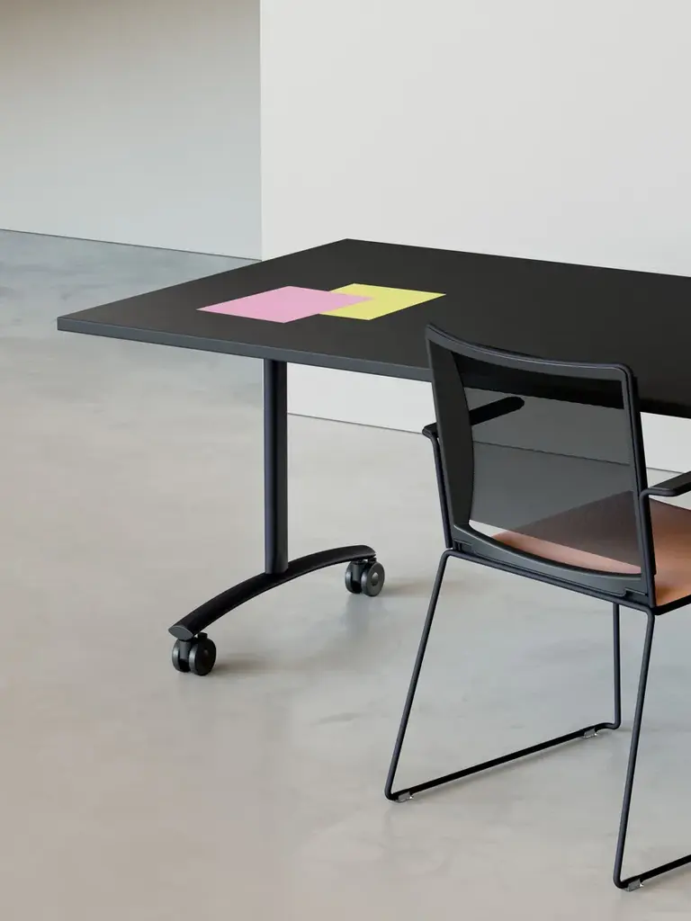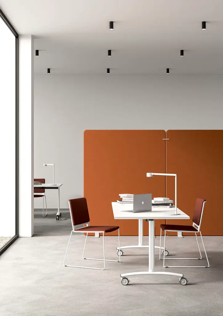 The Archimede AR table with a rectangular flip-top is a practical and designer solution for your meeting, conference, training or multimedia rooms. It’s also perfect for smart workers who need to transform their home into an office, even for just a few hours. In fact, thanks to its flip-top, the Archimede table – desk is quick and easy to put away after use. This table is the answer to the need to arrange professional spaces flexibly. Its castors and the possibility of flipping the top allow maximum freedom of movement and optimised space management through horizontal storage of the tables, which can be easily nested. Customisable with numerous finishes and colours to put life into your style, Archimede is available with various accessories, such as linking devices for joining tables, electrical and multimedia kits, cable management systems. The rectangular top of the Archimede table is available in different lengths and depths Also available in a GPP version.