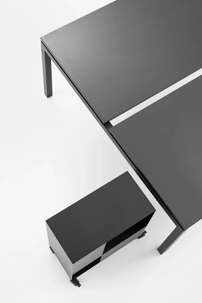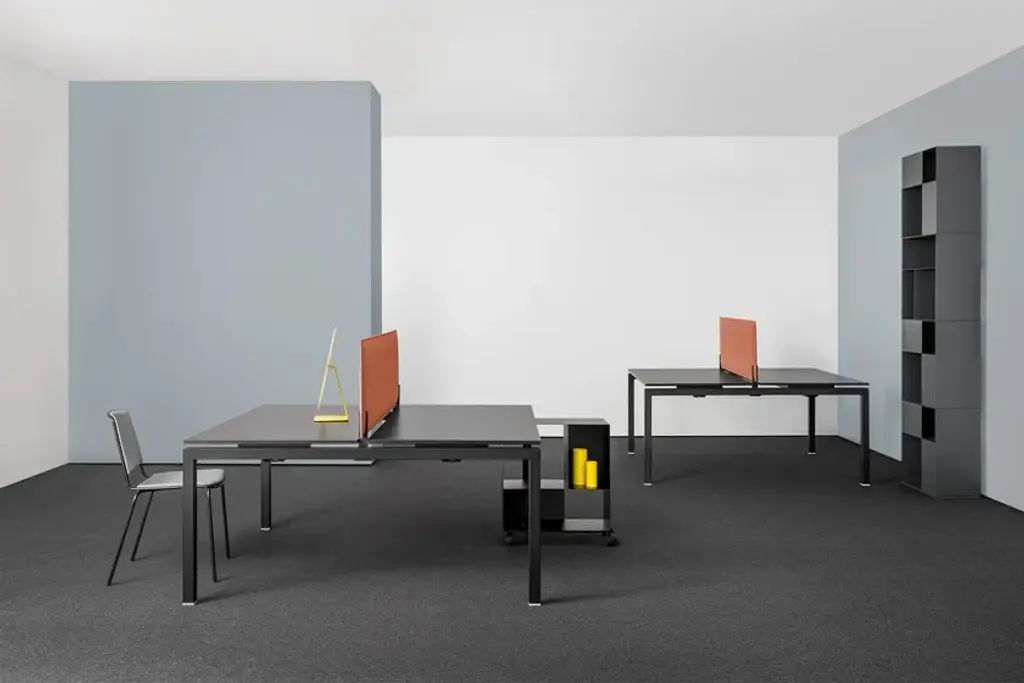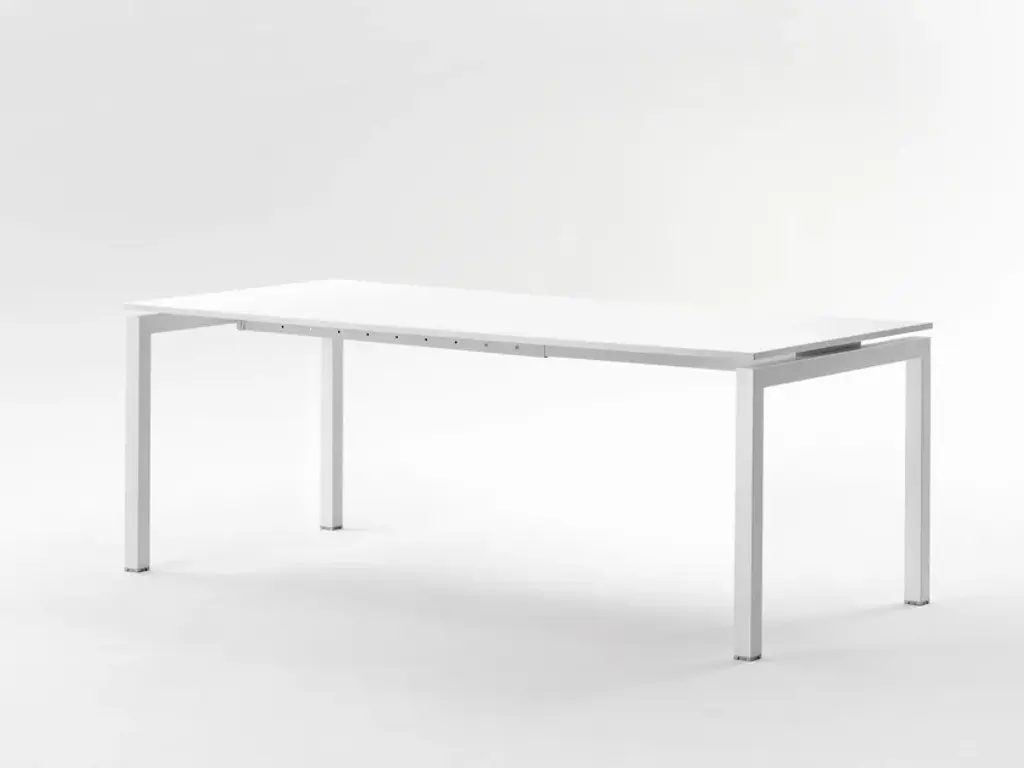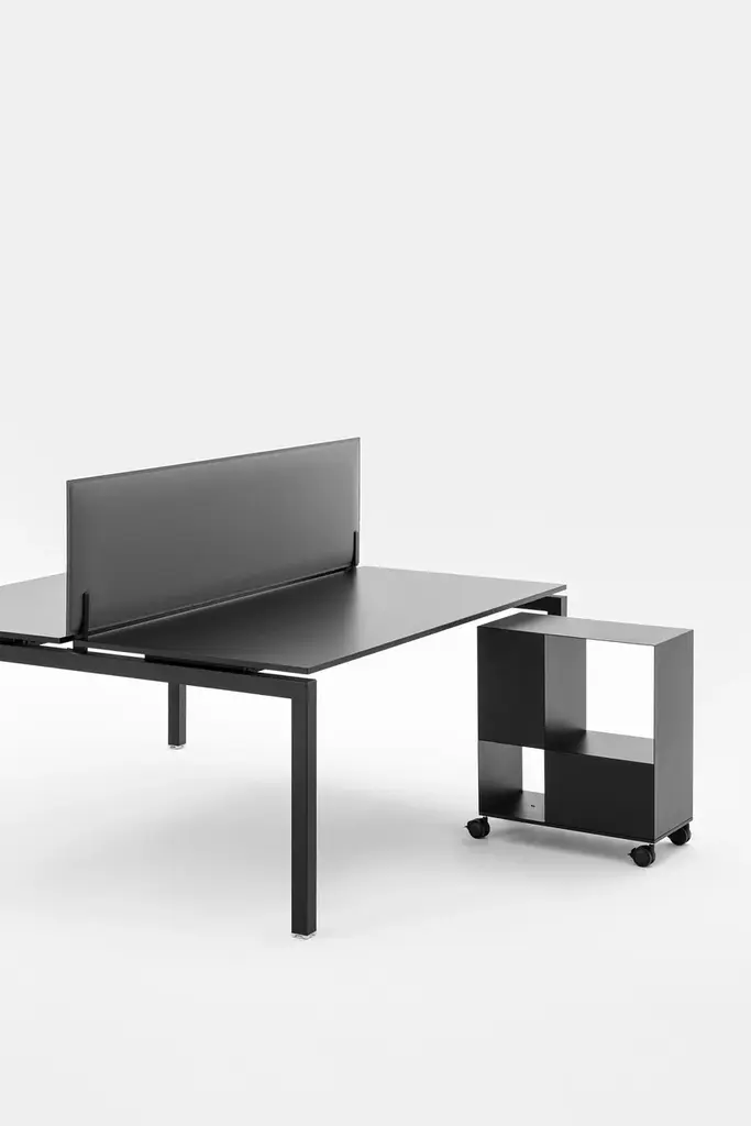 FIFT 50 is a table with simple and clean lines designed to discreetly furnish office environments. Modular, thanks to side legs of different lengths and intermediate legs, it allows the creation of different configurations, even large ones. Fifty 50 is a collection of tables and desks featuring a balance between aesthetic shape and kaleidoscopic use. Endless configurations can be designed for large and small workspaces: as single desk or shared workstations, it is ideal for offices and meeting rooms. The precision of the square-section frame is achieved thanks to the fiber technology of the new laser- cut machine installed at the company that performs an invisible welding and provides a surface finish never seen before. Fifty 50 is available in different sizes and offers a wide range of colours, finishes and accessories.